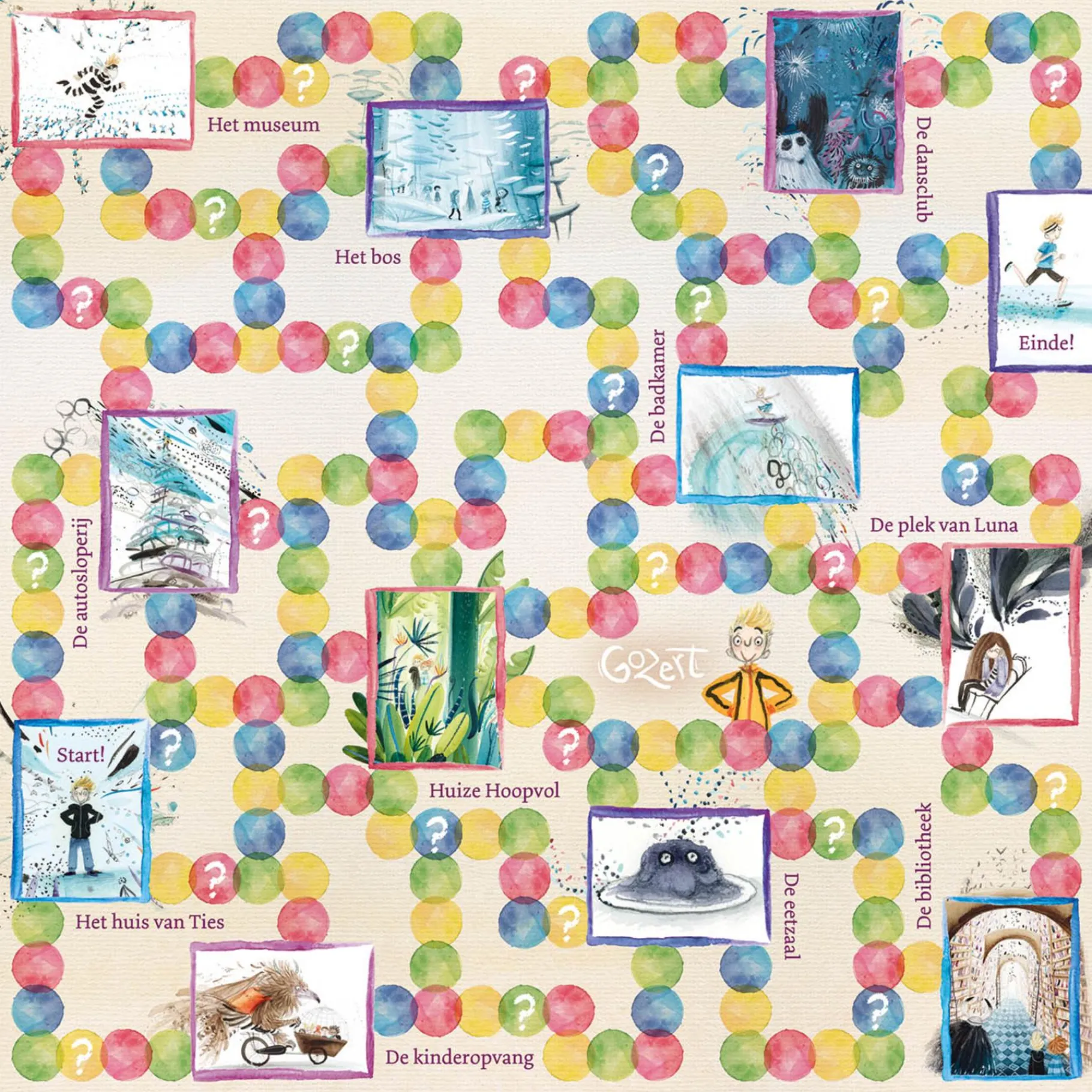 In Gozert het Bordspel verkennen spelers verschillende gebieden en voltooien ze diverse opdrachten en uitdagingen. Het speelbord is kleurrijk en aantrekkelijk, met levendige afbeeldingen die de fantasie prikkelen en de spelers onderdompelen in het spel. Het doel van het spel is om zoveel mogelijk punten te verzamelen door het voltooien van opdrachten, het behalen van doelen en het navigeren door de unieke spelelementen.