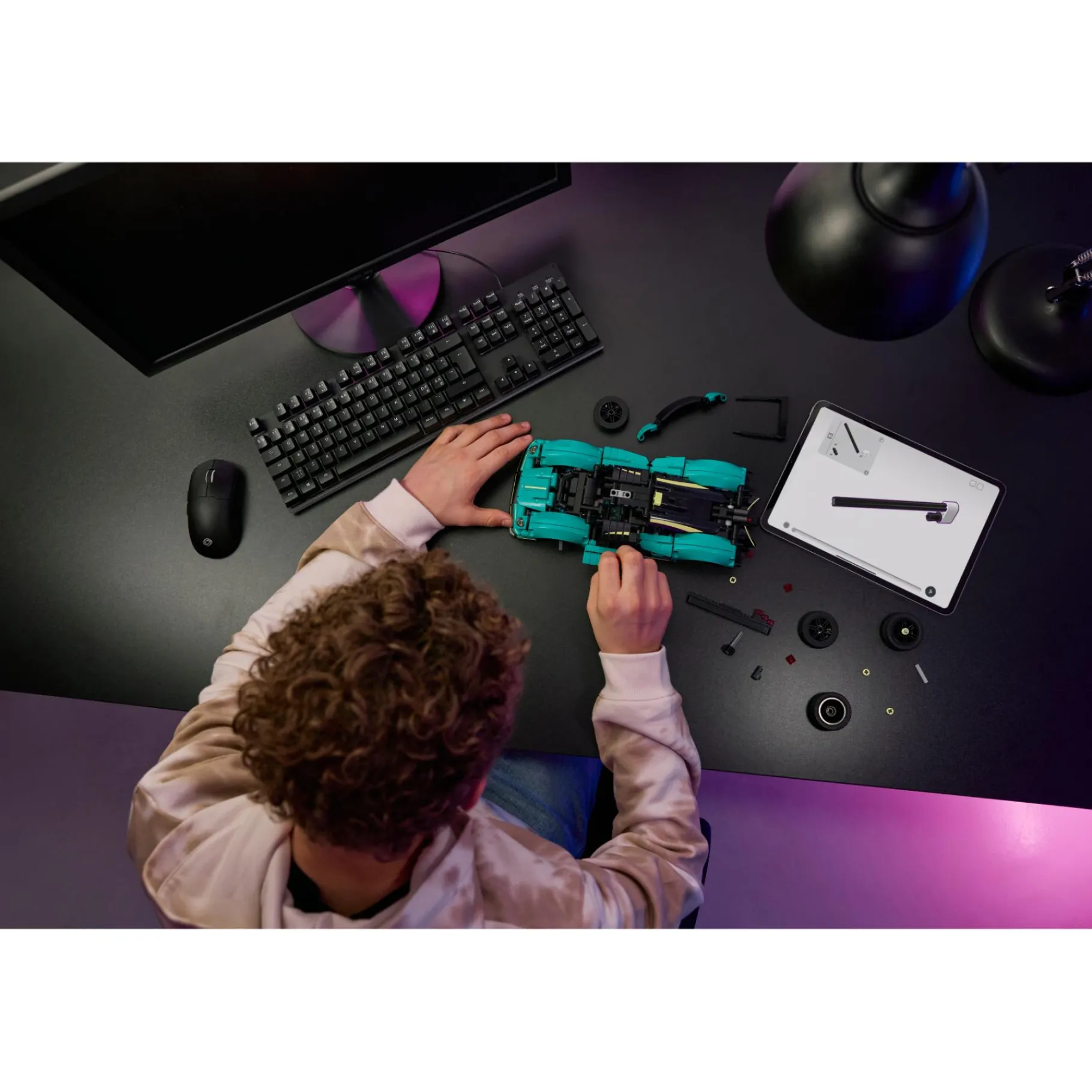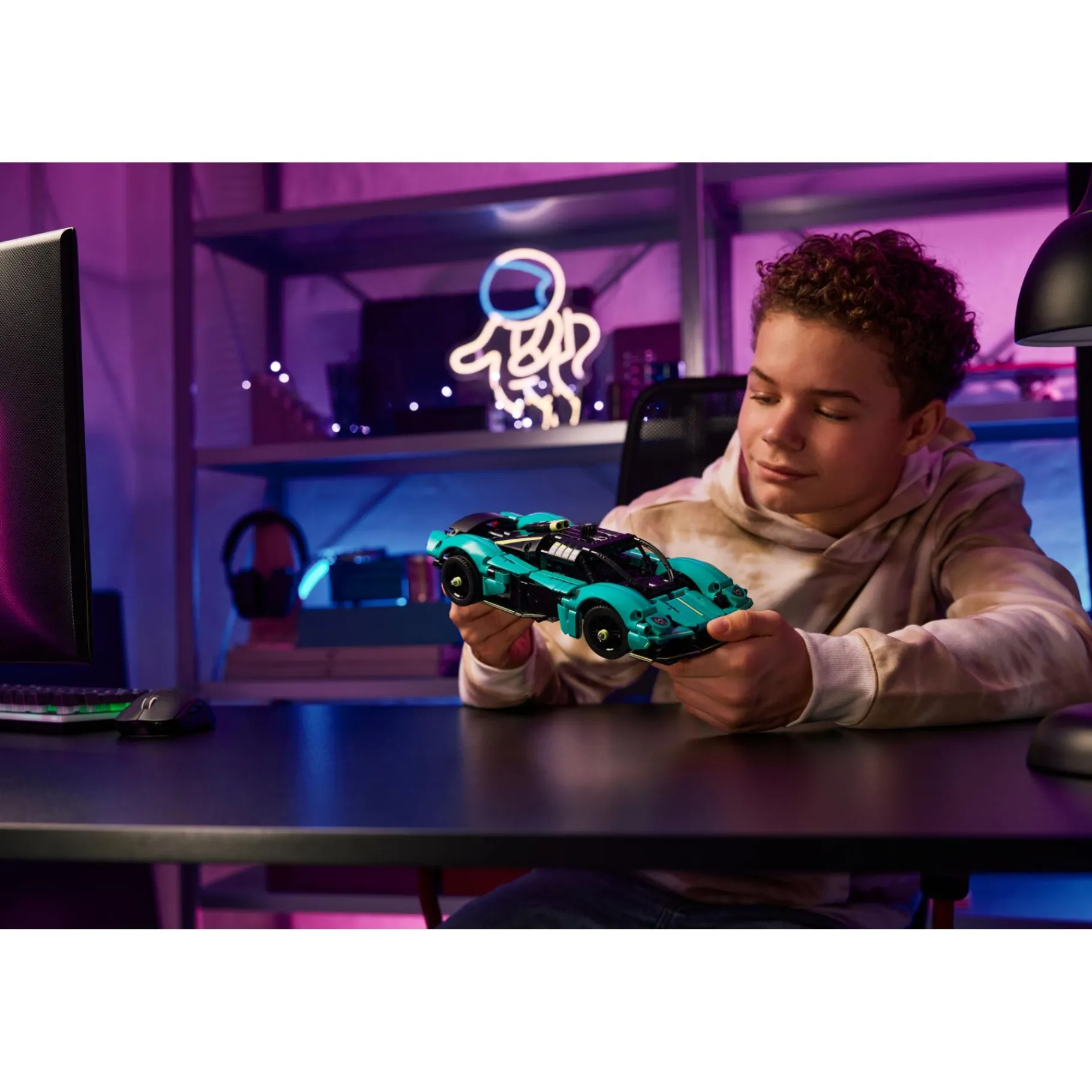 - Spectaculaire speelgoed raceauto – deze LEGO Technic raceauto heeft een opvallend groenblauw kleurenschema en kan worden neergezet tot de volgende keer dat de kinderen er een ritje mee willen maken