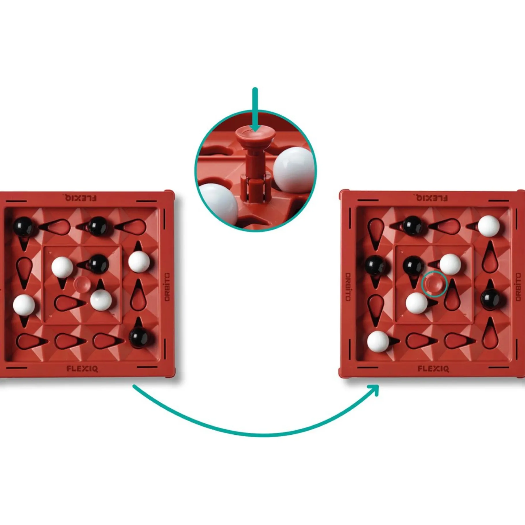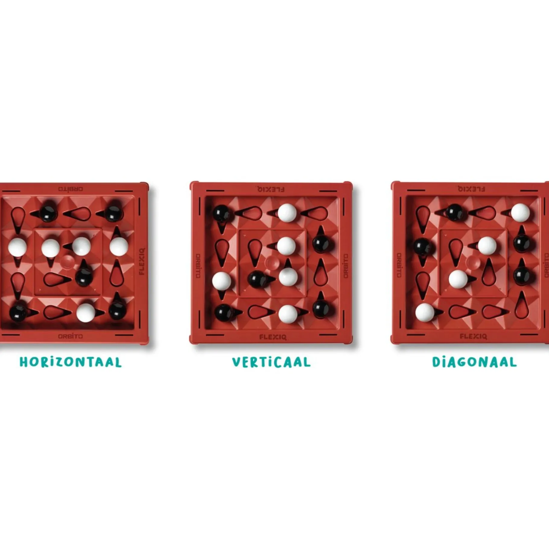 Elke speler plaatst om de beurt een knikker op het bewegende spelbord, met als doel vier knikkers van dezelfde kleur op een rij te krijgen – horizontaal, verticaal of diagonaal. Maar let op, na elke zet verandert het spel! Druk op de Orbitoknop om je beurt te beëindigen, waardoor alle knikkers één positie verschuiven en het spel een verrassende wending neemt.