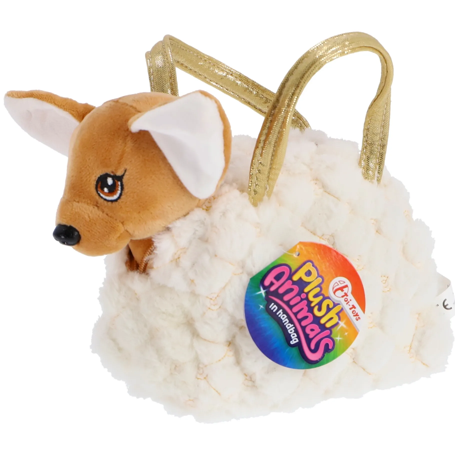 De handtas waarin de Chihuahua zich bevindt, is net zo charmant als de knuffel zelf. Het heeft een compact formaat dat perfect is voor kleine handjes om vast te houden en mee te nemen. De stijlvolle handvaten geven de handtas een extra vleugje elegantie.