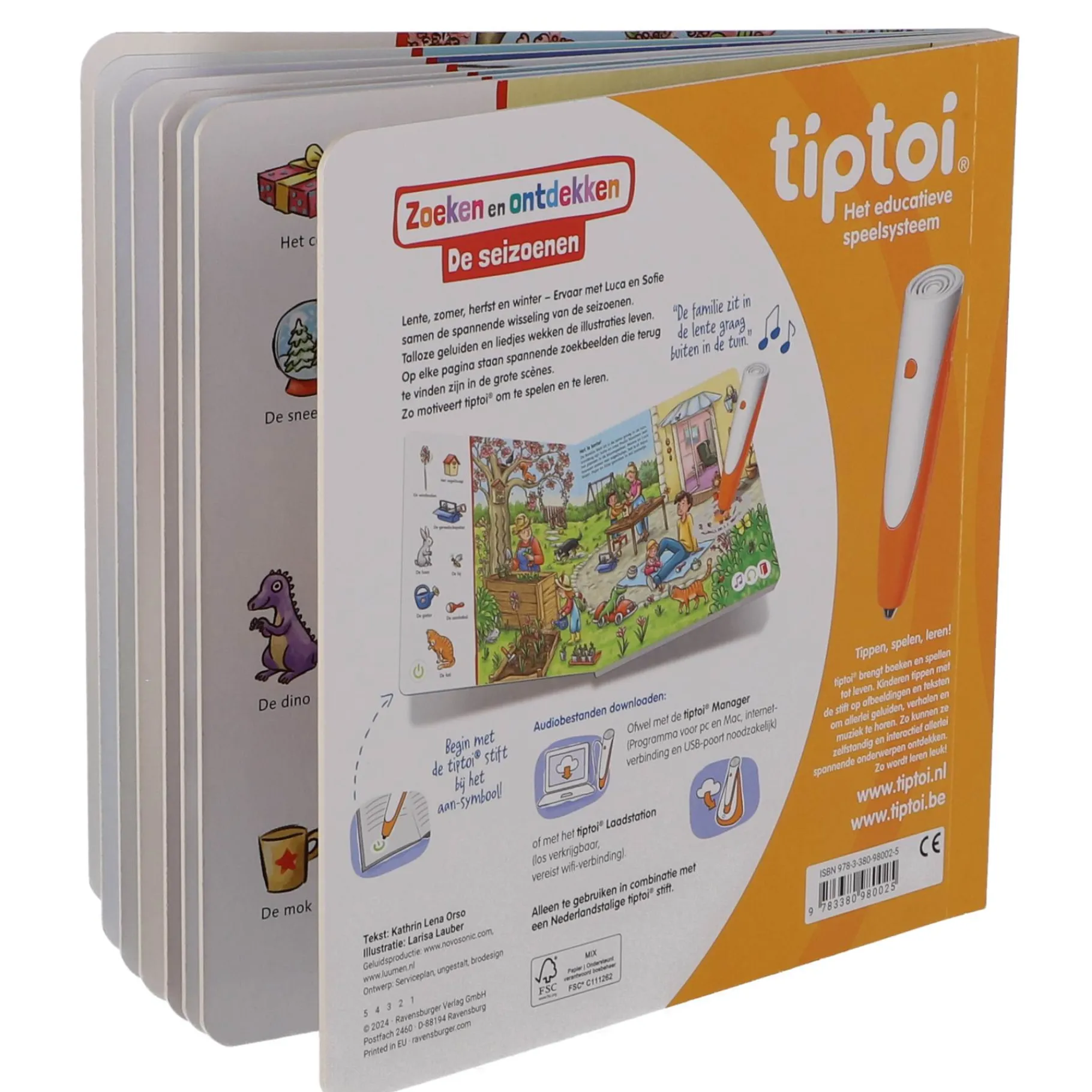 Het Tiptoi Boek “De Seizoenen – Zoeken en Ontdekken” biedt een interactieve en leerzame ontdekkingsreis door de vier seizoenen. Met prachtige illustraties en verrassende details leren kinderen over de veranderingen in de natuur, het gedrag van dieren, en de invloed van het weer. Door de Tiptoi-stift te gebruiken, worden de pagina’s tot leven gebracht met geluiden, verhalen en boeiende informatie, waardoor elke ontdekking spannend en leerzaam is.