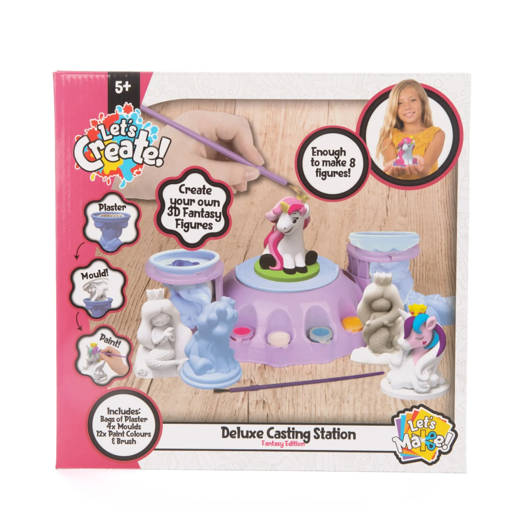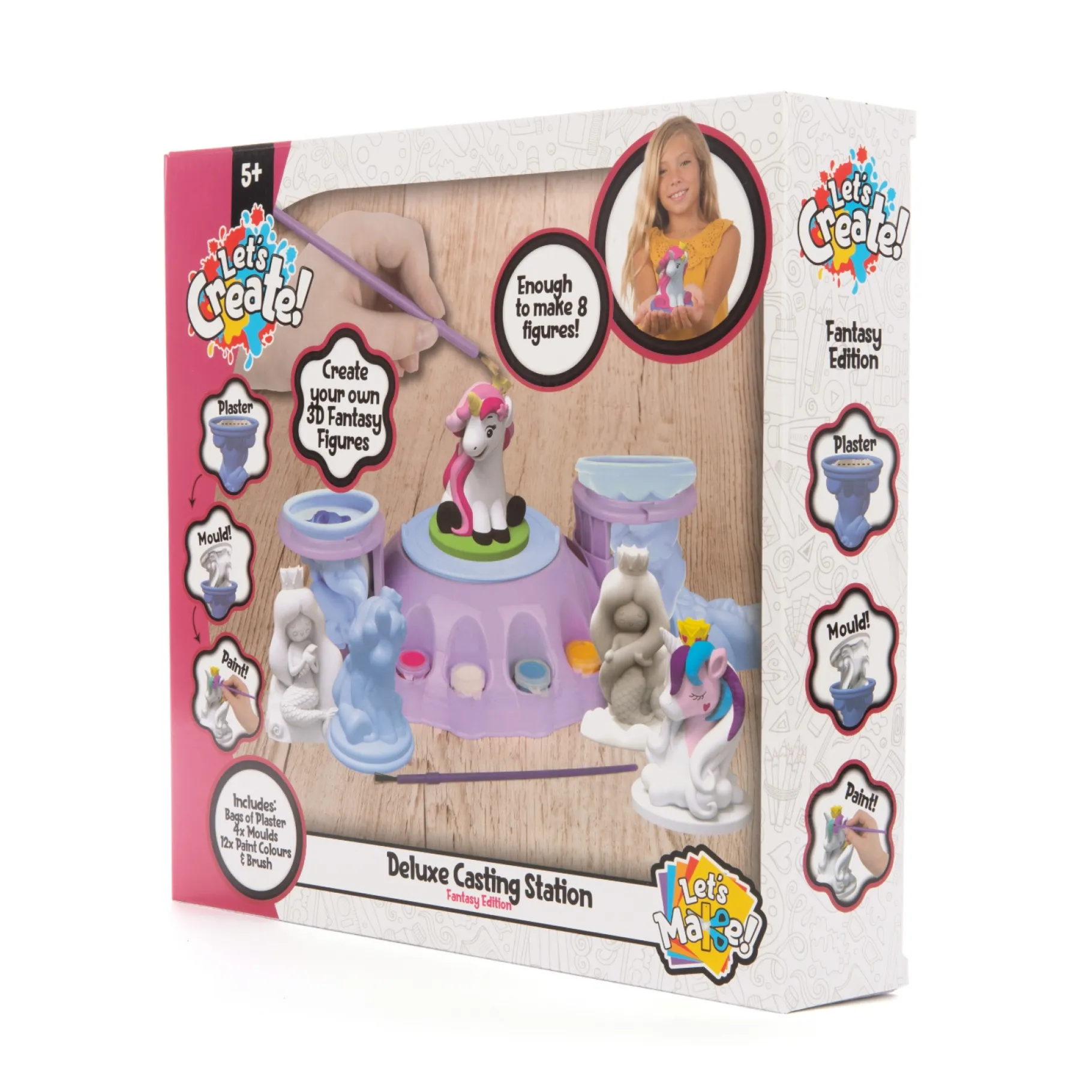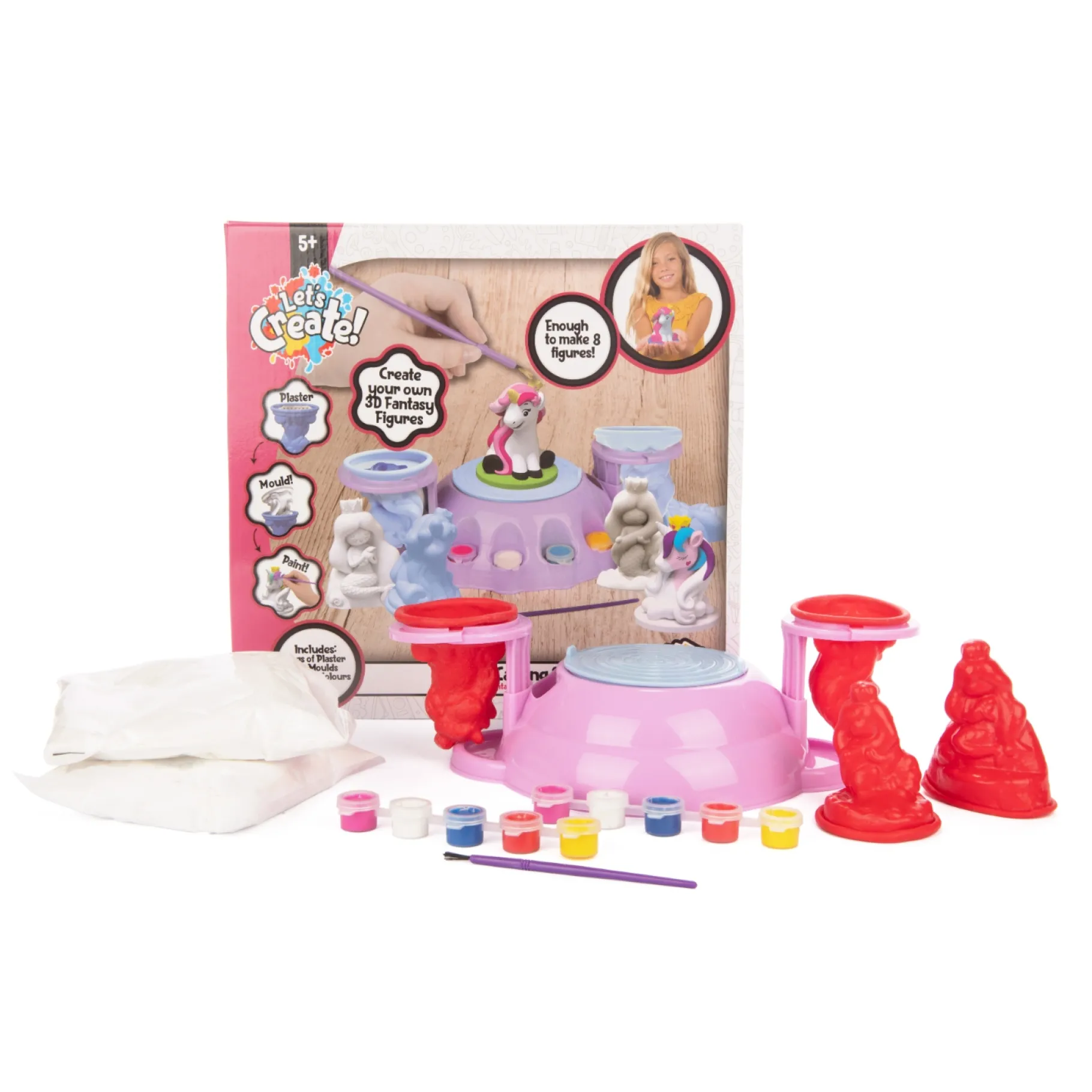 Met het Gips Station Eenhoorn Deluxe kunnen kinderen hun eigen eenhoorn- en zeemeerminbeeldjes vormen en creƫren. Nadat de figuurtjes zijn gemaakt, kunnen ze deze zelf een kleurtje geven en hun verbeeldingskracht de vrije loop laten.