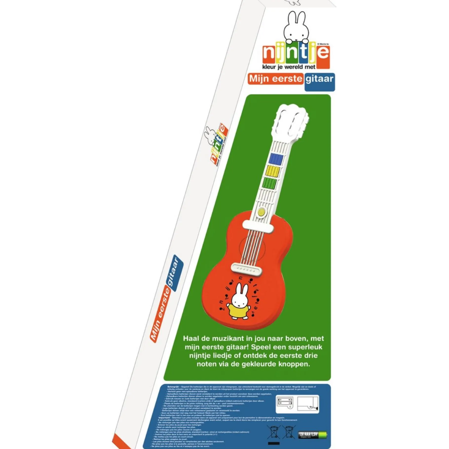 De gitaar wordt geleverd met 2 AAA 1,5V batterijen, zodat je meteen kunt beginnen met spelen. Deze muzikale ontdekkingsreis is geschikt voor kinderen vanaf 1 jaar.