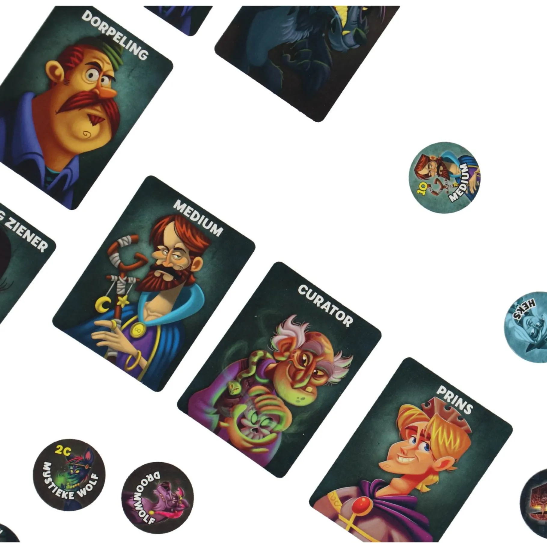 Met de 16 rollenkaarten, 16 rollenfiches, 2 schilden en 6 artefacten heb je alles wat je nodig hebt om het spel te spelen. De spelregels zijn eenvoudig te begrijpen, maar het spel zelf zit vol met spanning en verrassingen.