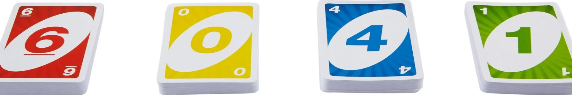Er zijn 4 verschillende kleuren kaarten, rood, groen, blauw en geel, met de nummers 0 tot en met 9 daar op. Je kan alleen je kaart opgooien als de kleur of het cijfer op de kaart het zelfde is. Heb je mog maar 1 kaart over? roep dan snel UNO! Er zijn ook een aantal zwarte kaarten daarmee kun je andere spelers dwars zitten, ideaal voor strategische wendingen en onverwachte verrassingen!