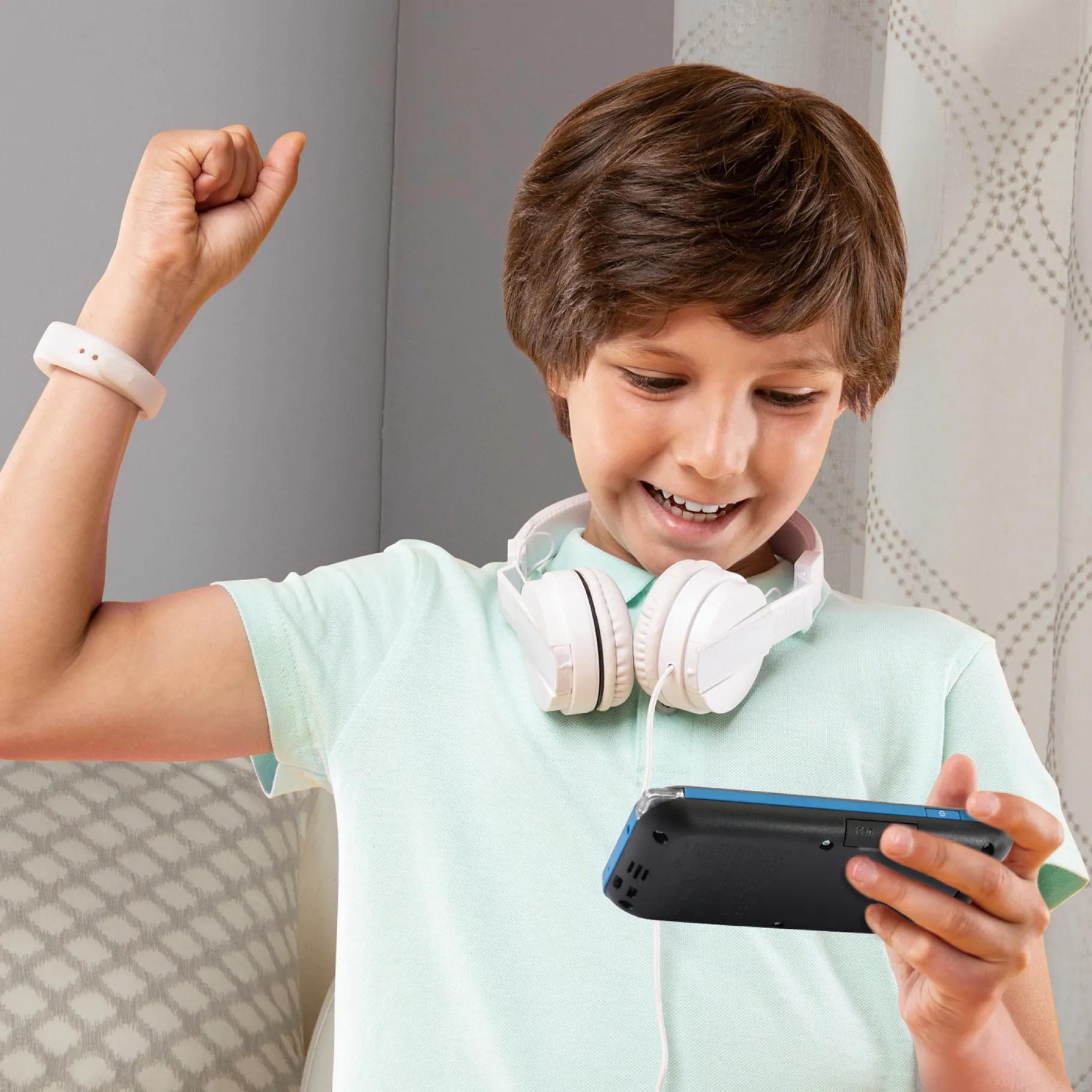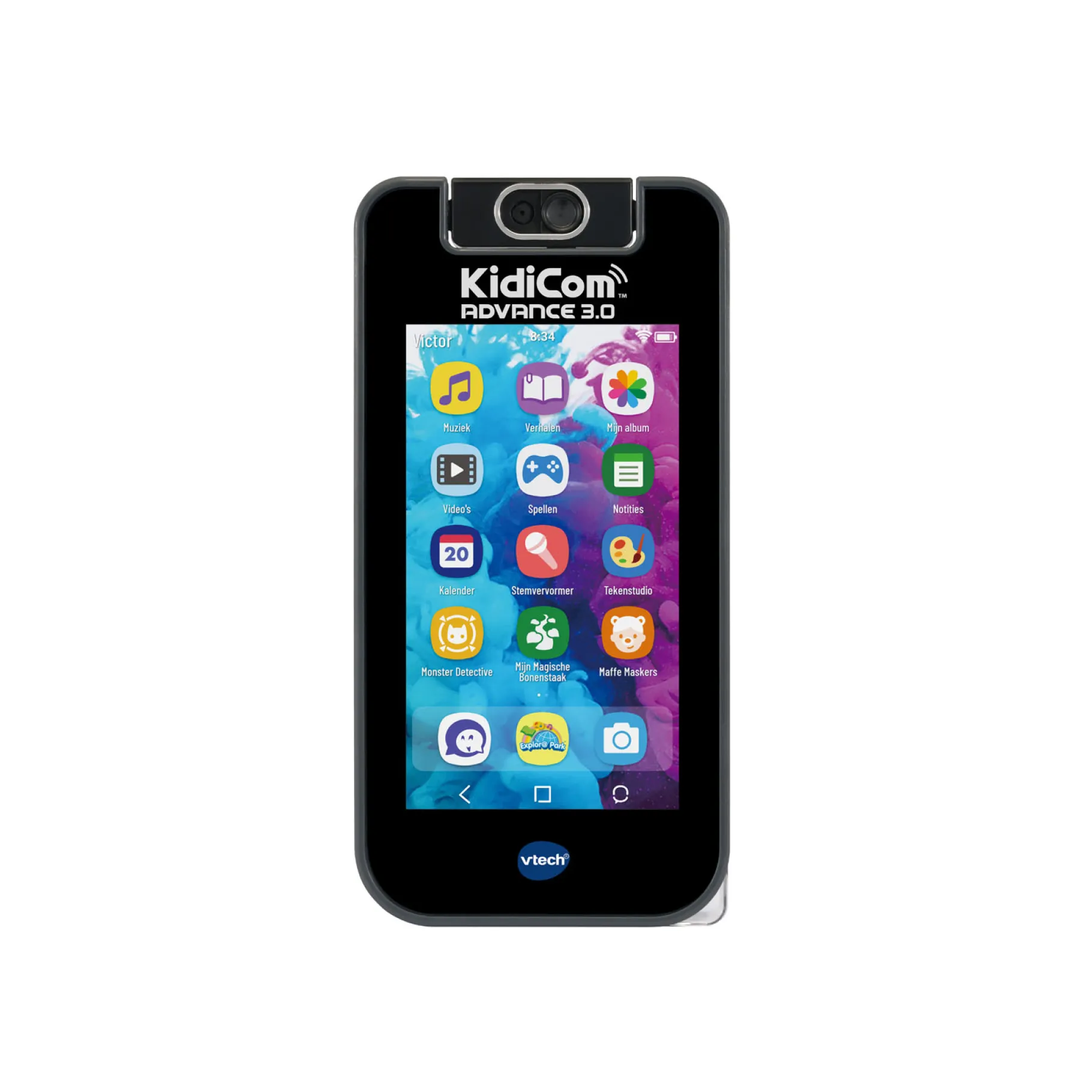 - Ingebouwde apps: De KidiCom Chat bevat 20 ingebouwde apps, waaronder leuke en educatieve spellen, maffe maskers enen augmented reality spel genaamd Monster Detective.