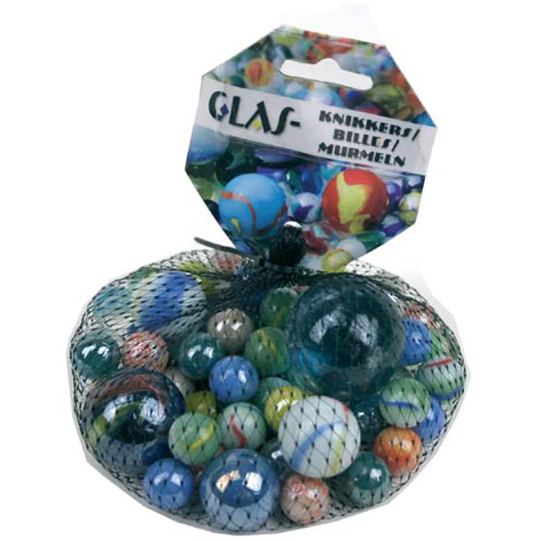 Speel een oud-Hollands potje knikkeren met dit knikker pondje. In dit zakje zit 500 gr glazen knikkers in verschillende maten.