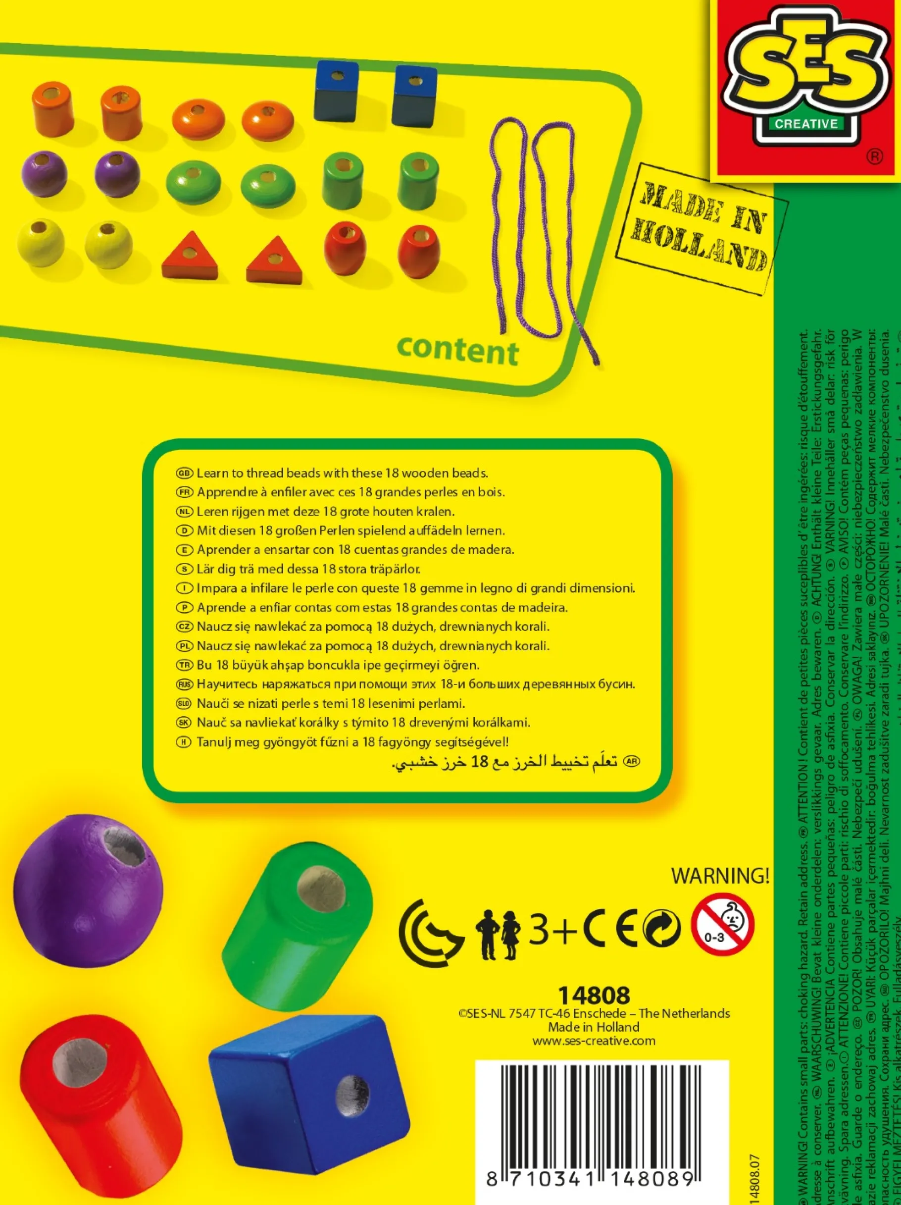 Leren rijgen kan best moeilijk zijn. Maar met deze set van SES is het een eitje! De set bevat grote, houten kralen en een speciaal bewerkt rijgbord, zodat je het makkelijk kunt leren. Kralen leren rijgen is erg goed voor de ontwikkeling van je fijne motoriek. Maar het belangrijkste is natuurlijk dat jij straks een supermooie kralenketting hebt!