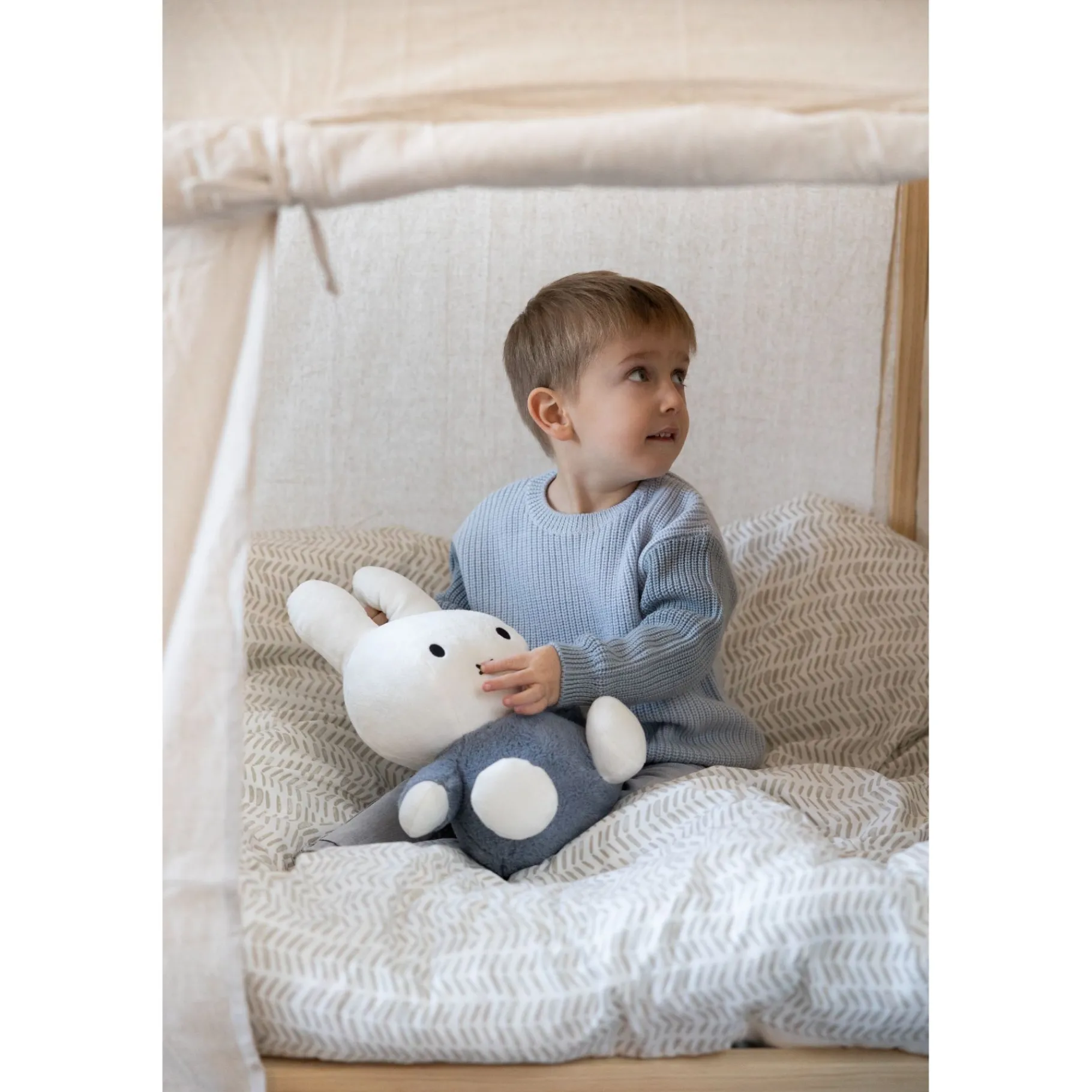 Kenmerken van de schattige Nijntje Fluffy Knuffel van 35 cm in het blauw: