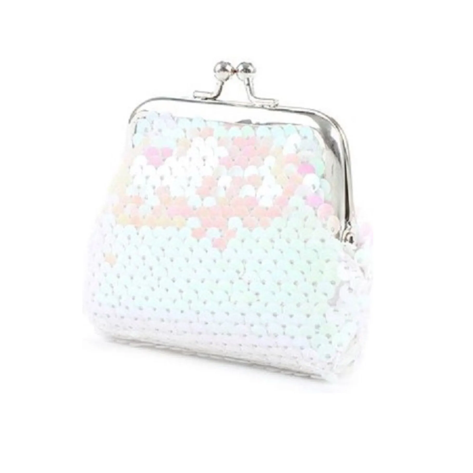 Dit portemonneetje heeft een nostalgische uitstraling dankzij zijn retro ontwerp en is bedekt met pailletten die je look een beetje glamour geven. De pailletten kunnen van kleur veranderen wanneer je ze aanraakt, waardoor het portemonneetje niet alleen praktisch is, maar ook leuk en interactief.