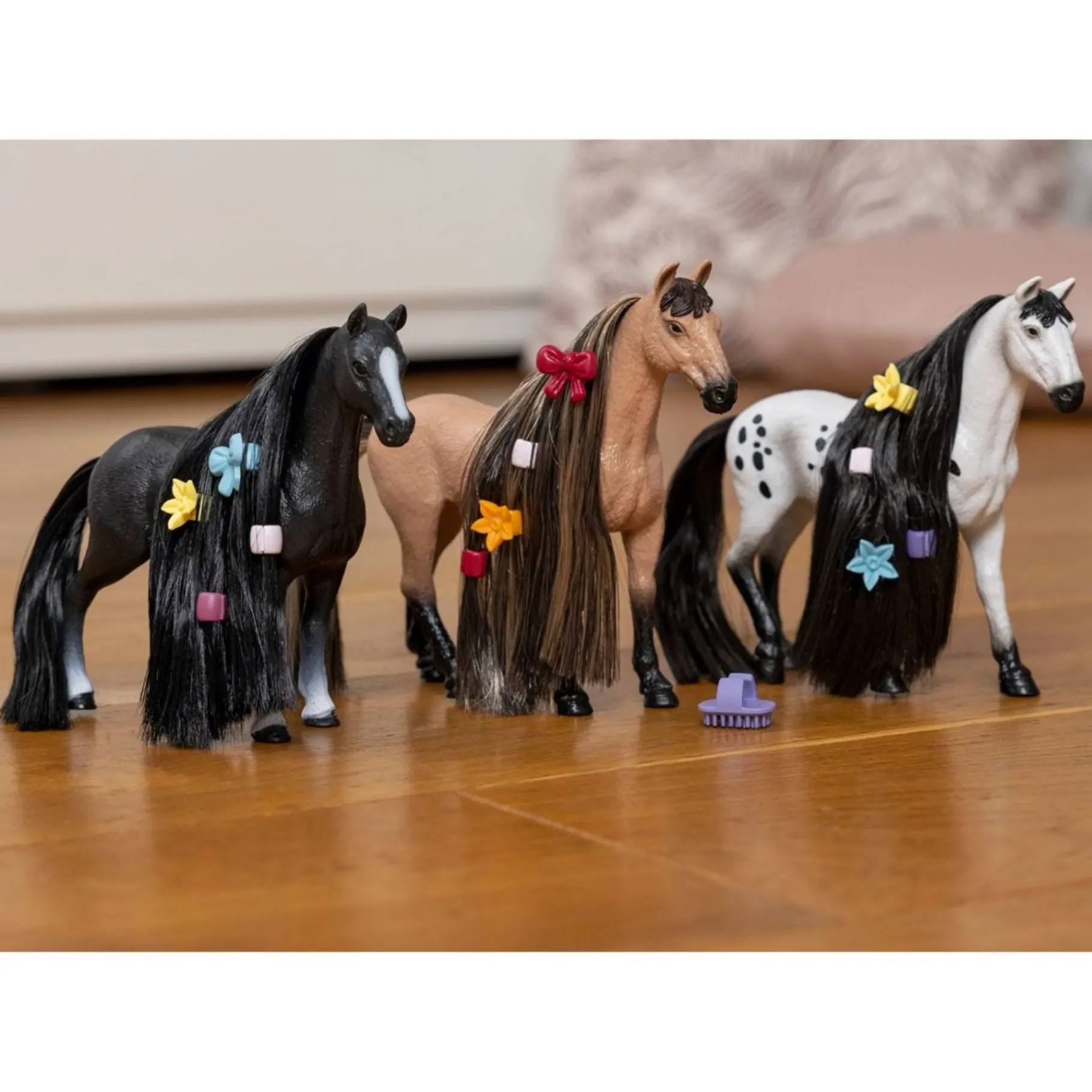 Zijn schoonheid is verbluffend, toch? De Knabstrupper hengst, Beauty Horse, steelt zonder twijfel de show met zijn prachtig gevlekte vacht. Maar dat is nog niet alles! Zijn staart en manen zijn weelderig en verrassend lang. En gelukkig draagt hij altijd een vingertopkam bij zich, zodat je zijn lange manen kunt kammen tot een zijdezachte glans. Wat staat er vandaag op het kapselmenu? Een uitgebreide vlecht of misschien enkele speelse strengen? Wat je ook kiest, een paar haarparels of een vrolijke strik zijn zeker de kers op de taart!