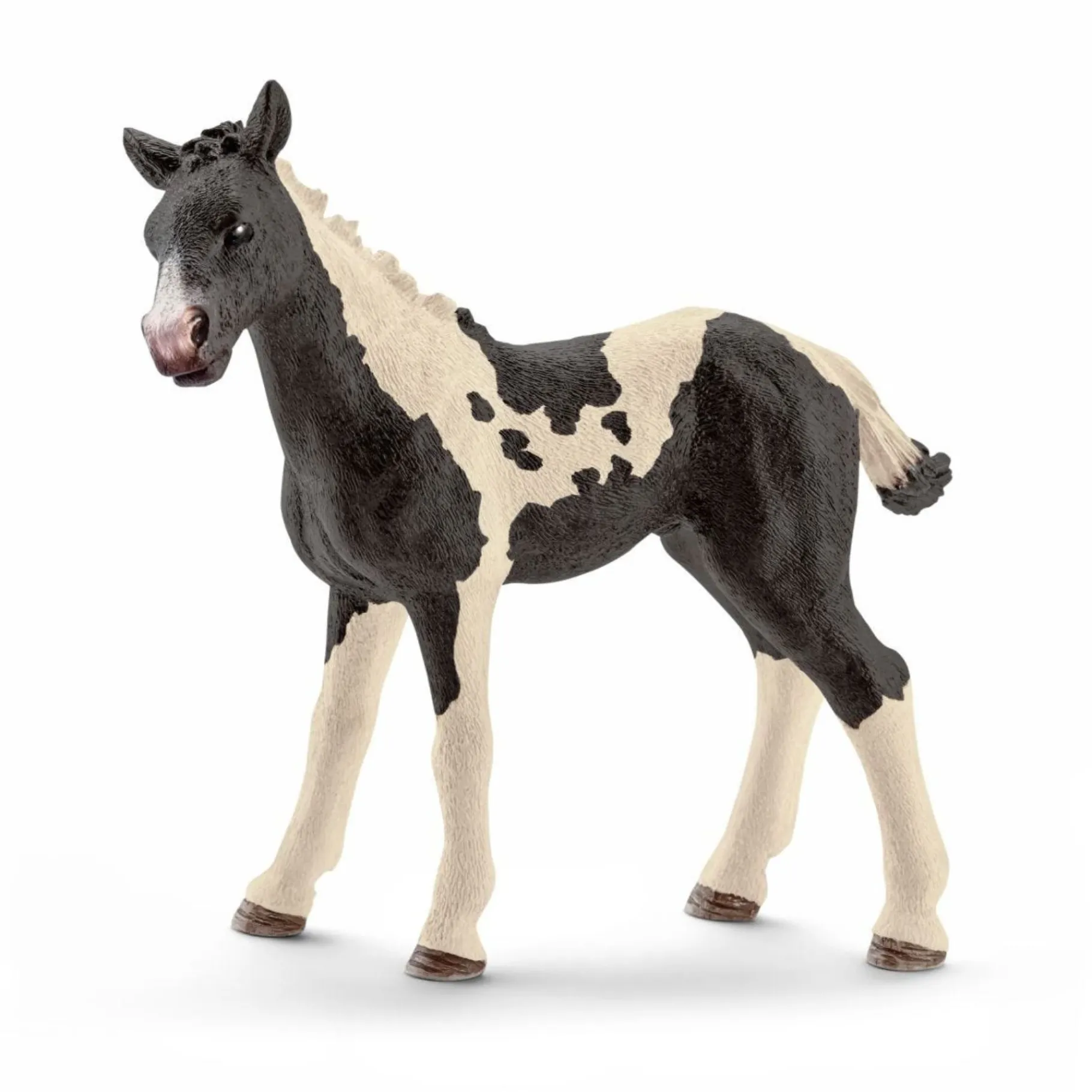 Breid je Schleichverzameling uit met dit vrolijke Pinto veulen! Dit vrolijke veulen houdt ervan om rond te rennen in de wei en lekker gek te doen. Breng extra vrolijkheid op je boerderij of manege met de hulp van dit energieke paardje.