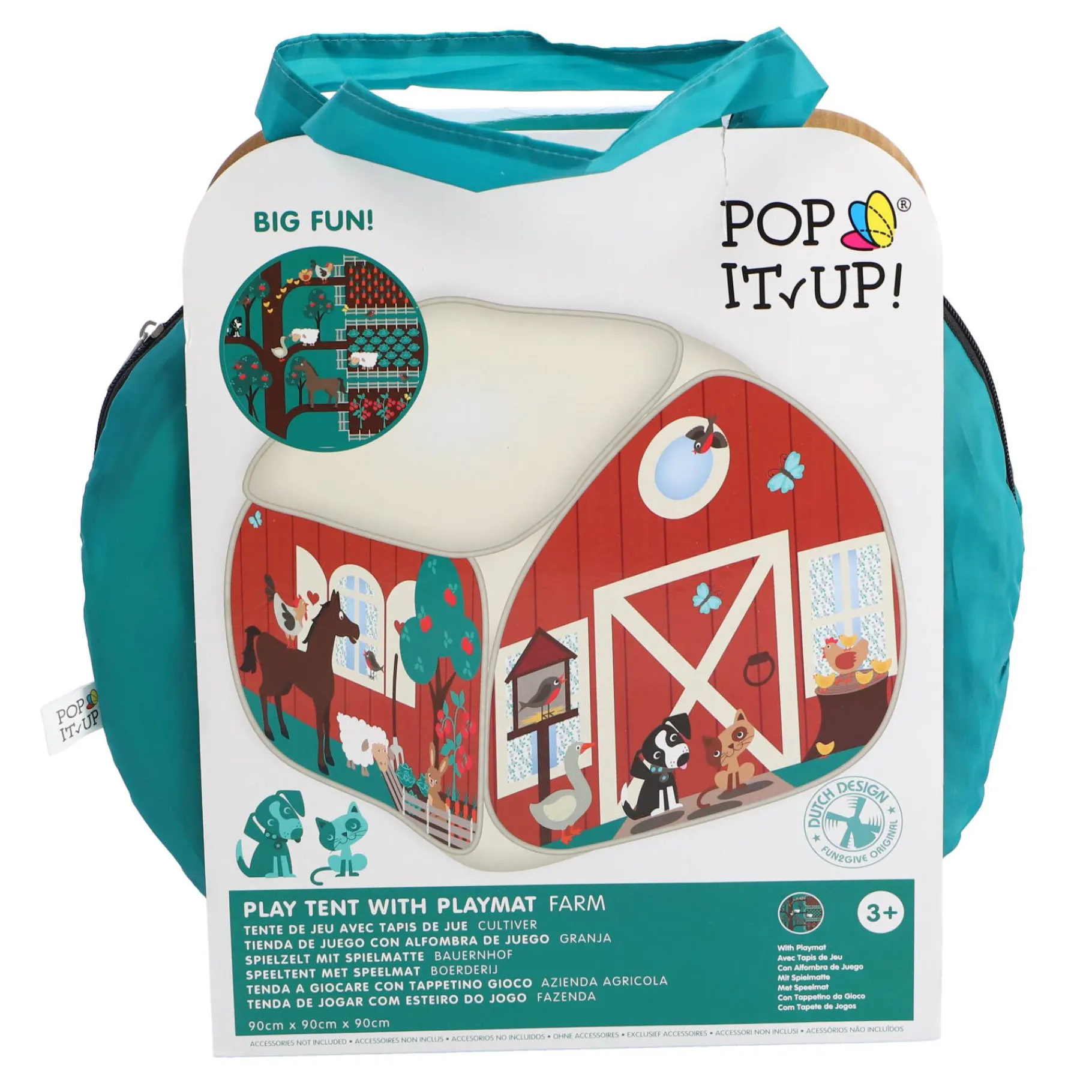 Stap binnen in een wereld vol avontuur en plezier, waar de levendige boerderijscène je uitnodigt om te spelen en te verkennen. De tent is gemaakt van 100% polyester en is super eenvoudig op te zetten. In een mum van tijd tover je een magische plek tevoorschijn waarin de verbeelding van je kind kan bloeien.