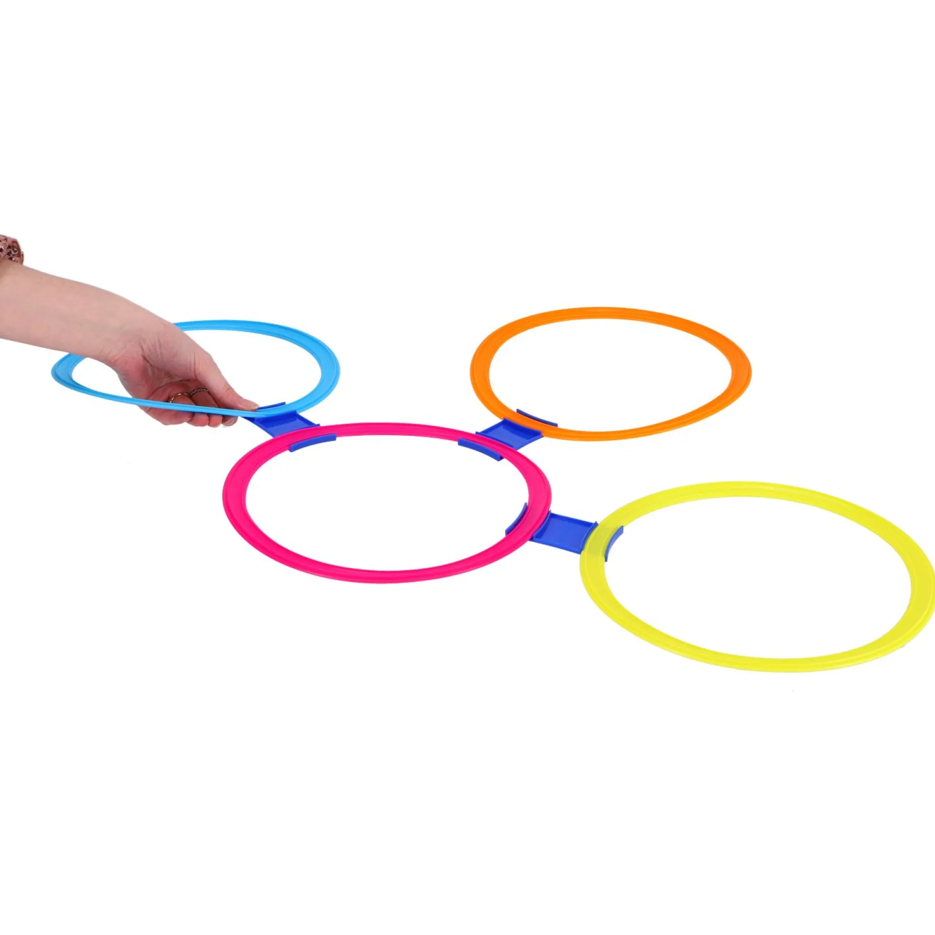 Hinkel jij vaak? Hinkelen is natuurlijk ook superleuk! En met deze hinkelringen wordt het nóg leuker! Je kunt de ringen namelijk precies zo neerleggen als jij wilt. Leg ze dicht bij elkaar in de buurt of juist ver bij elkaar vandaan, zodat je verder moet hinkelen. Leg ze in een rondje, een lijn of een ander leuk patroon. Jij beslist! Om de ringen steviger te laten liggen, kun je ze ook aan elkaar vastliggen.