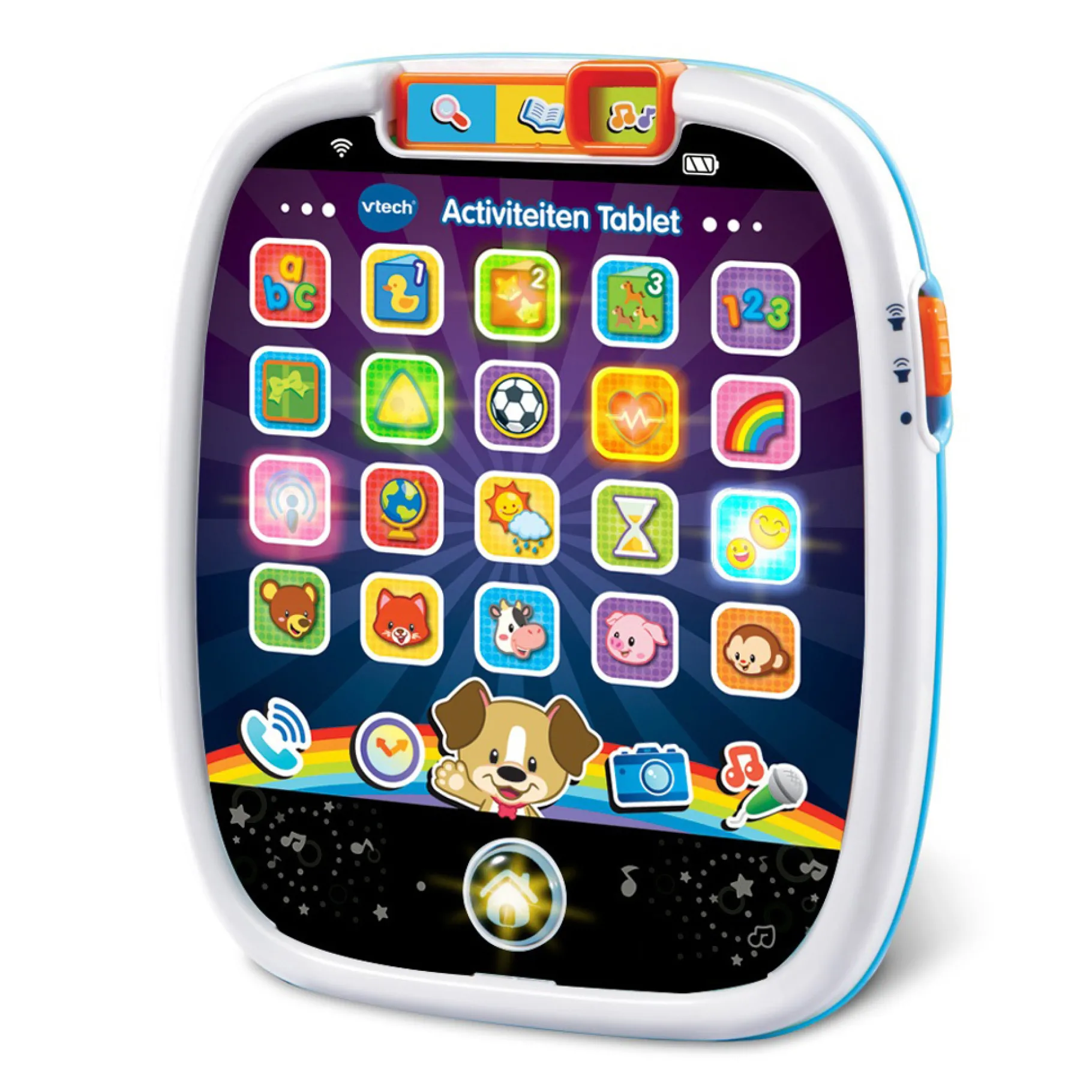 Dé educatieve tablet voor de allerkleinsten! Raak de 25 interactieve app-toetsen aan om kennis te maken met kleuren, vormen, dieren en nog veel meer! Luister naar muziek en korte verhaaltjes, ‘bel’ een vriendje en leer interessante weetjes. De lieve puppy zingt drie vrolijke liedjes en begeleidt je tijdens het spelen.