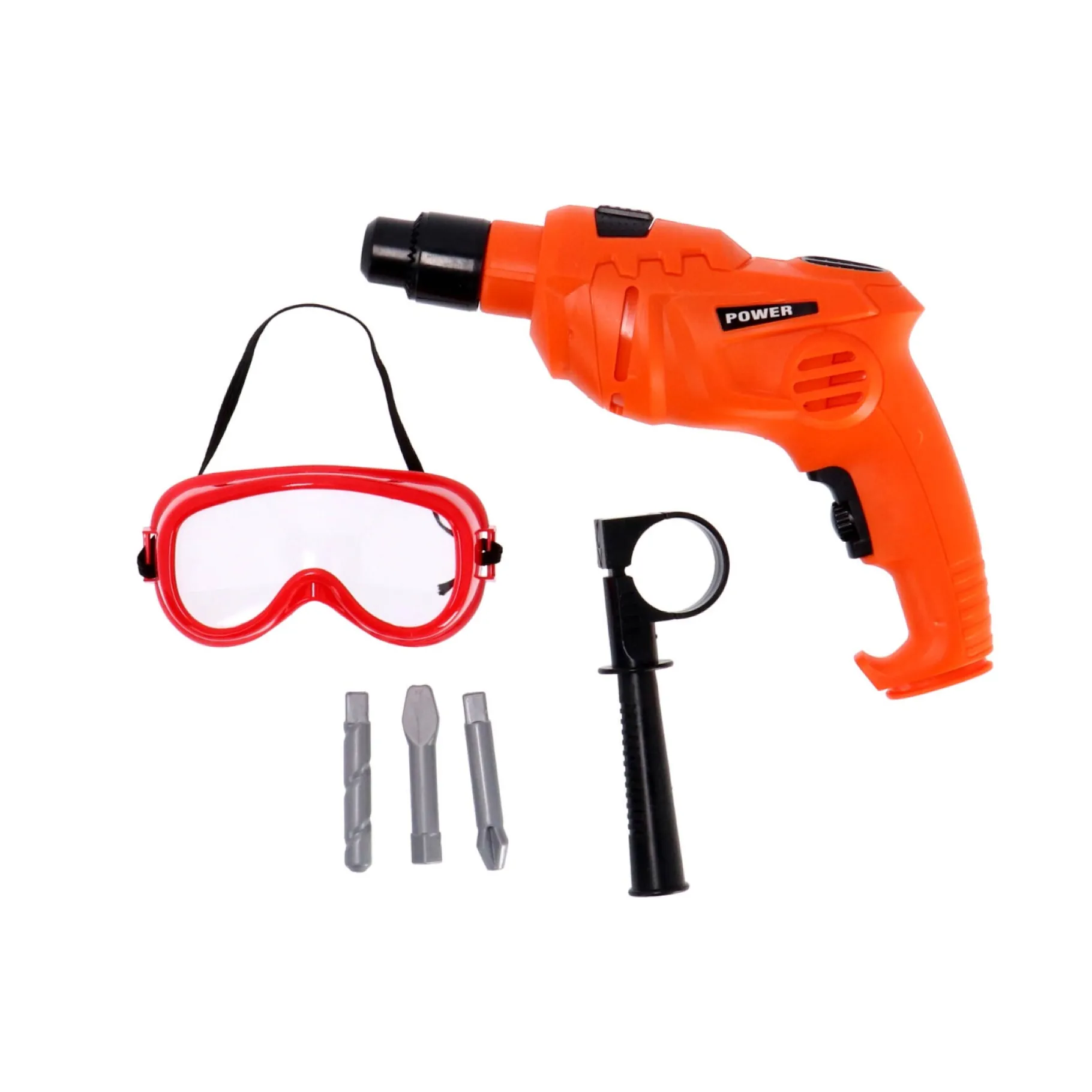 Ga aan de slag op de bouwplaats (of in huis) met deze handige boormachine met veiligheidsbril. De boormachine is net echt! Wees een echte hulp en doe alsof je een gat boort met de boormachine. Vergeet niet je veiligheidsbril op te zetten!
