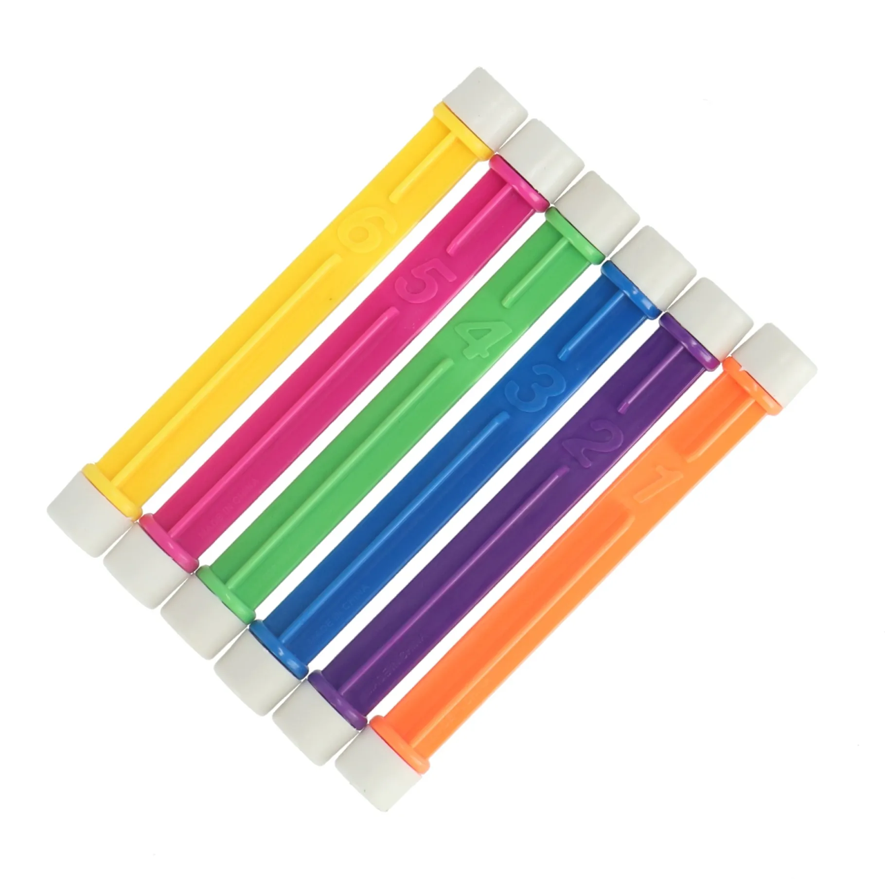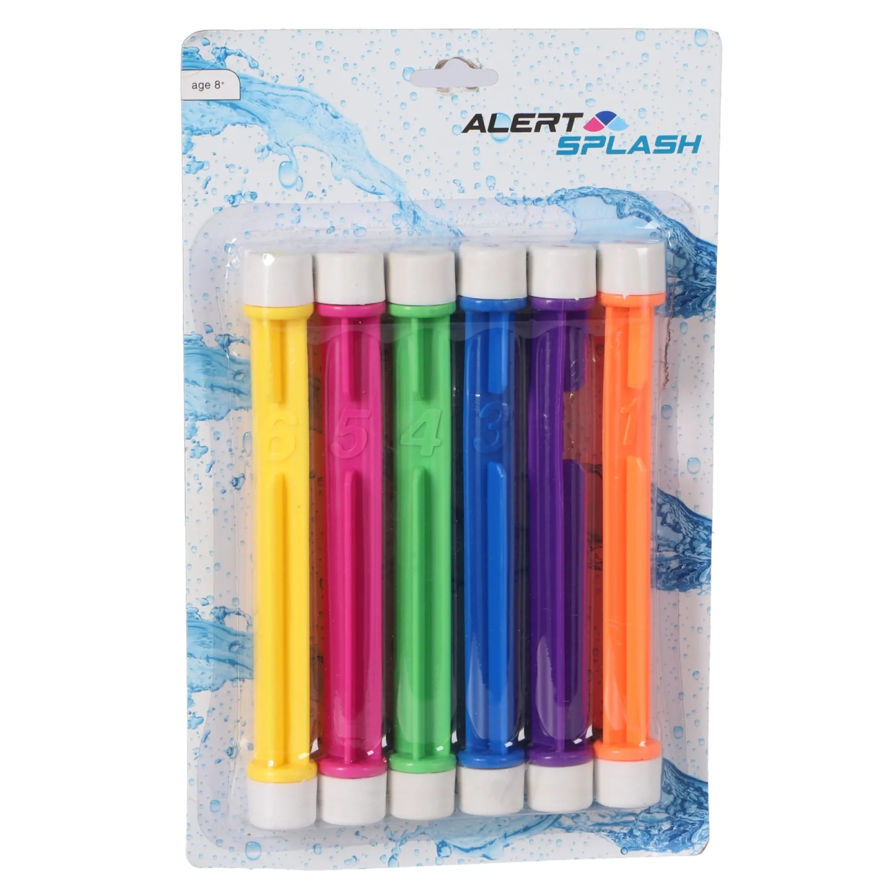 Oefen je duiktechnieken met deze 6 duikstaven. Duik diep het water in op ze op te pakken. Door de felle kleuren zijn ze makkelijk te zien onder water.