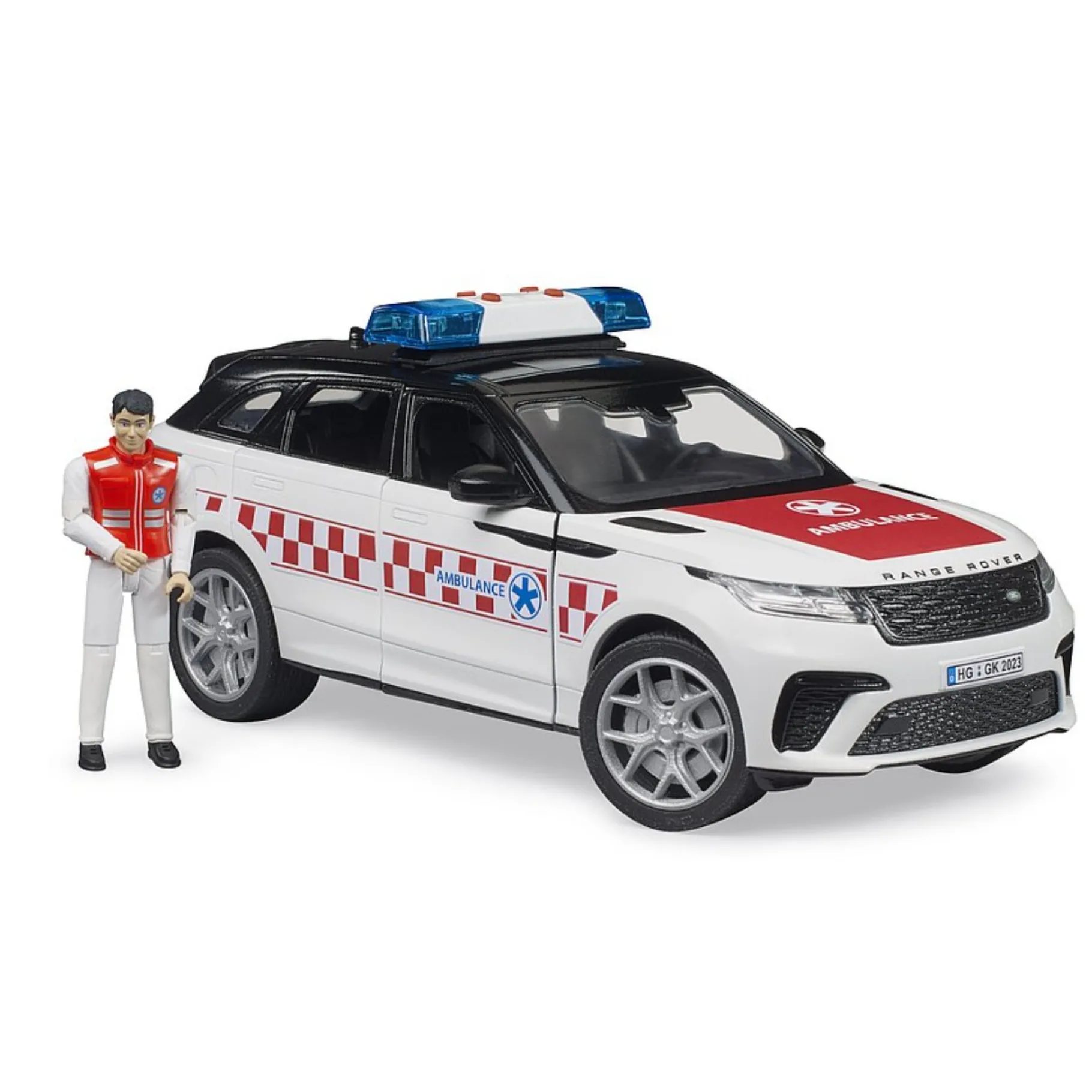 Met de Range Rover Velar als hulpverleningsvoertuig ben je altijd voorbereid op elke noodsituatie. Voeg dit stijlvolle en functionele voertuig toe aan je Bruder-collectie en ervaar de perfecte combinatie van elegantie, comfort en prestaties. Deze terreinwagen zal je speelwereld verrijken en zorgen voor eindeloos speelplezier!