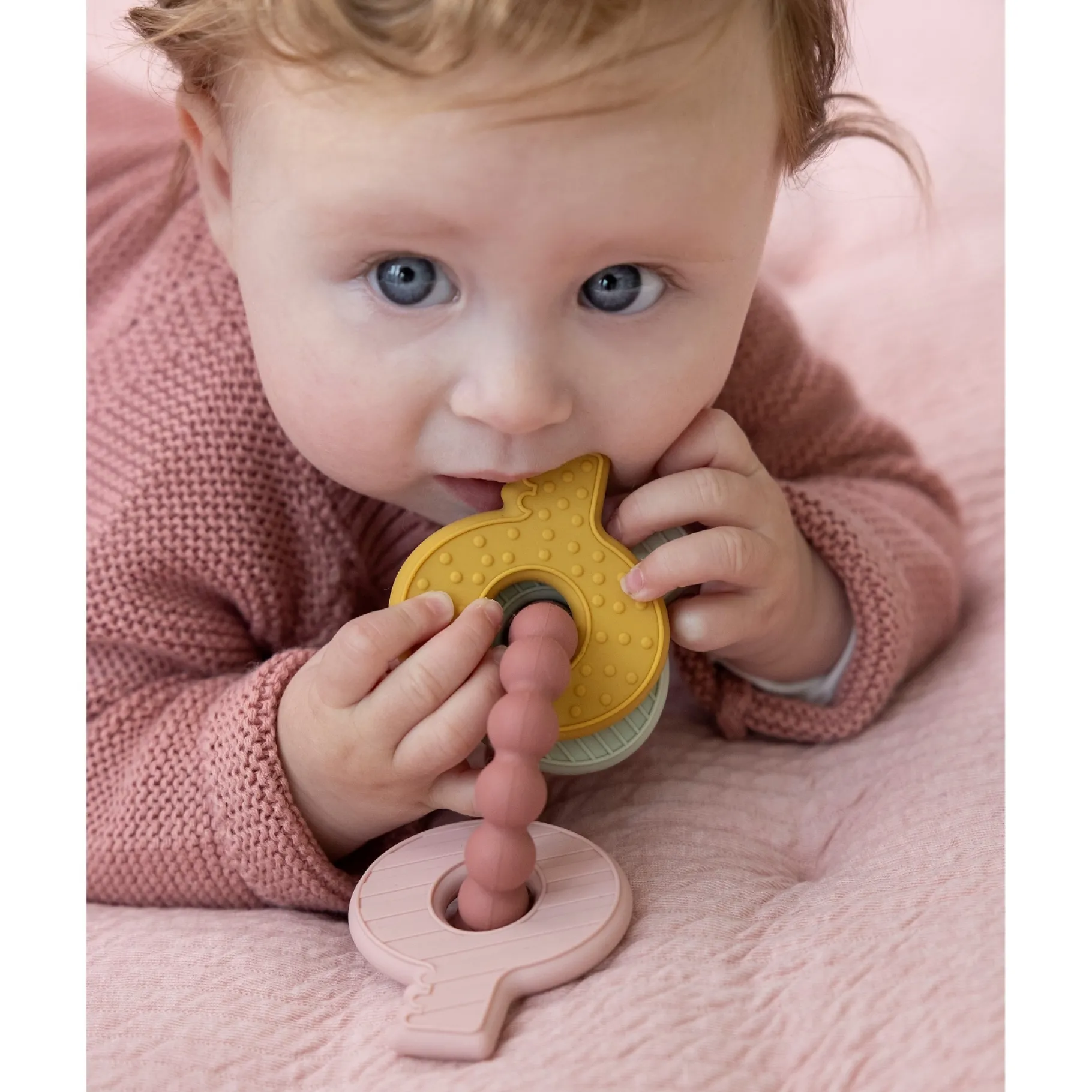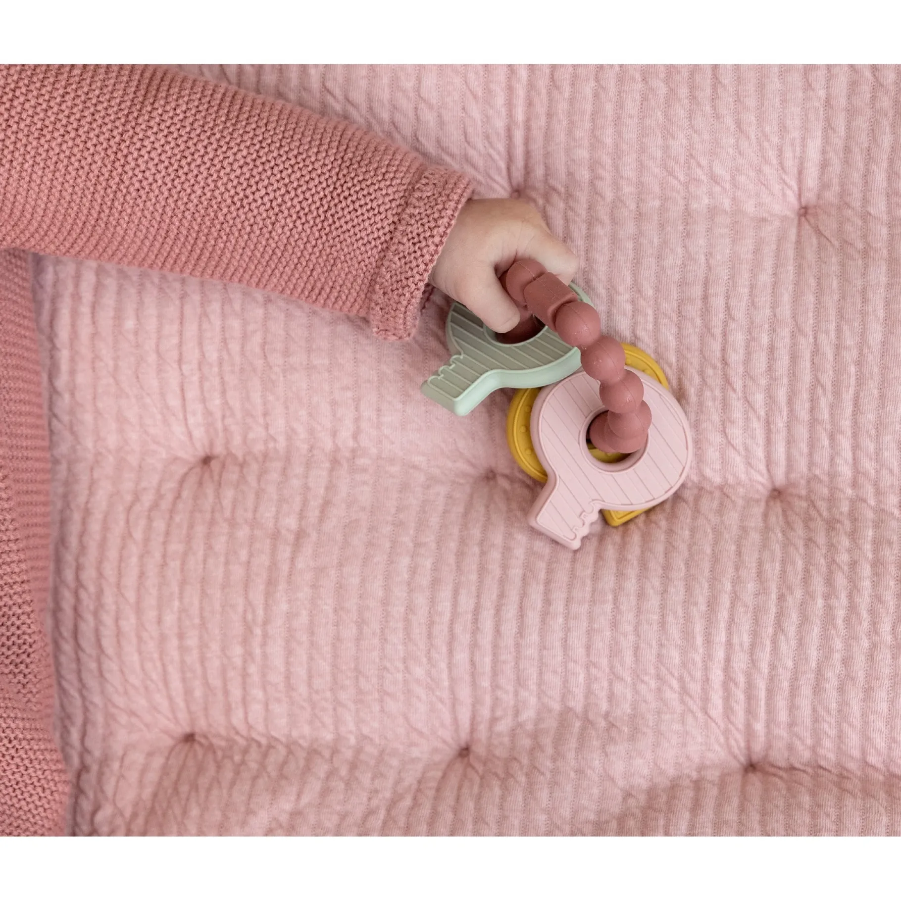 Doordat het bijtspeeltje in de vorm van een sleutelbos komt, kan het ook een leuk en interessant speeltje zijn voor je baby om mee te spelen, zelfs als er geen tandjes doorkomen.