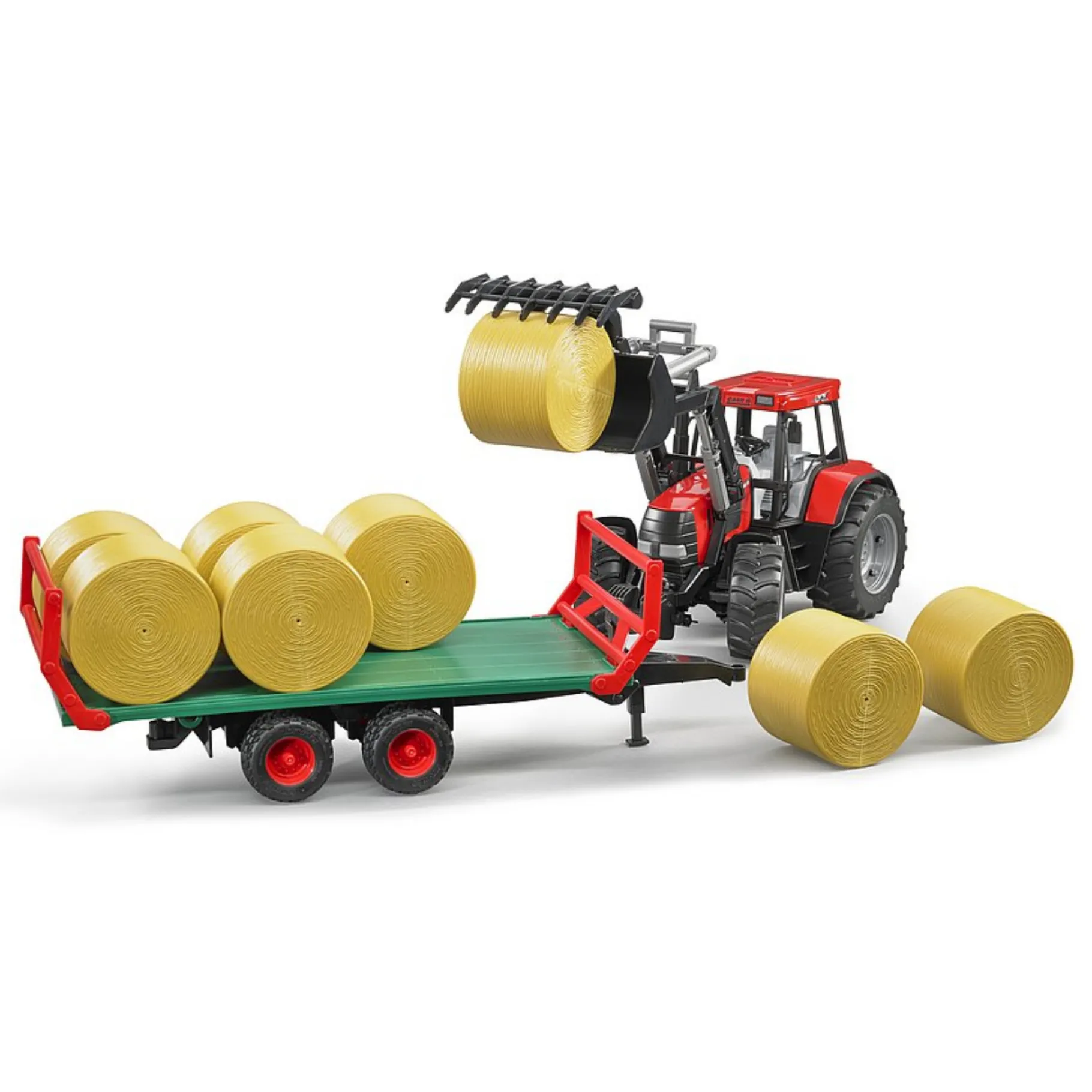 De Bruder aanhanger met hooibalen is geschikt voor boeren vanaf drie jaar.