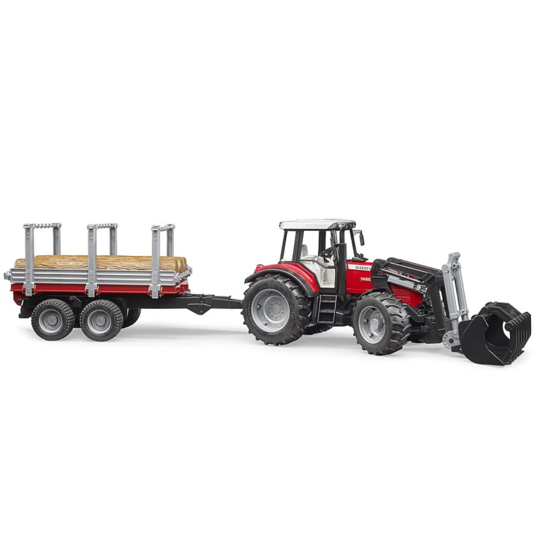 De Bruder tractor Massey Ferguson 7480 met houttransport aanhanger is geschikt voor bosbouwers vanaf drie jaar.