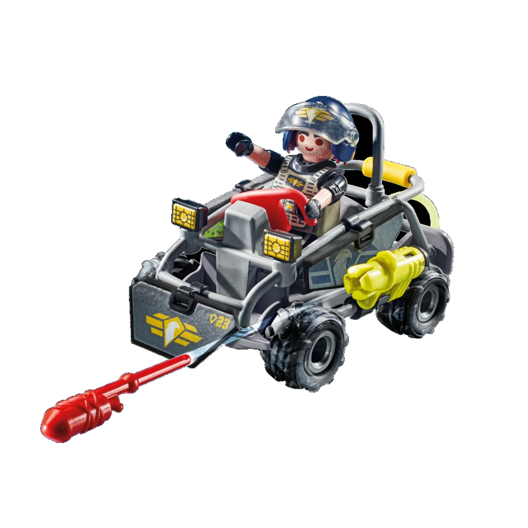 Kinderen kunnen hun verbeelding de vrije loop laten terwijl ze zich politieachtervolgingen, reddingsoperaties en spannende missies voorstellen. De gedetailleerde accessoires en het realistische ontwerp van de multi-terreinwagen voegen een extra dimensie toe aan het speelplezier.