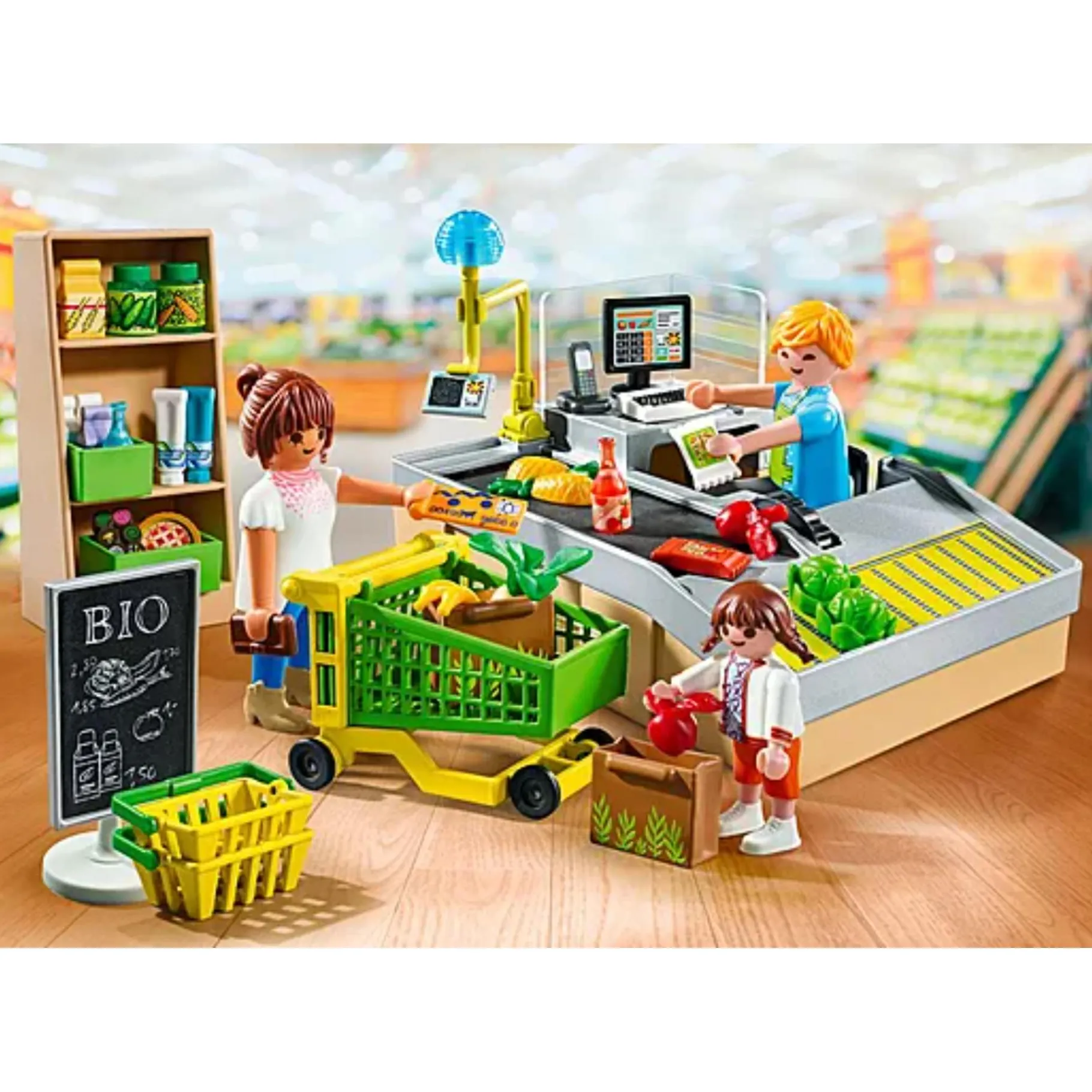 Kinderen kunnen met deze set hun fantasie gebruiken om klanten te bedienen, producten in te slaan en gezonde maaltijden samen te stellen. Het naspelen van alledaagse activiteiten in de supermarkt helpt kinderen niet alleen bij het ontwikkelen van sociale vaardigheden en probleemoplossend denken, maar leert ze ook het belang van biologisch voedsel en bewuste keuzes.