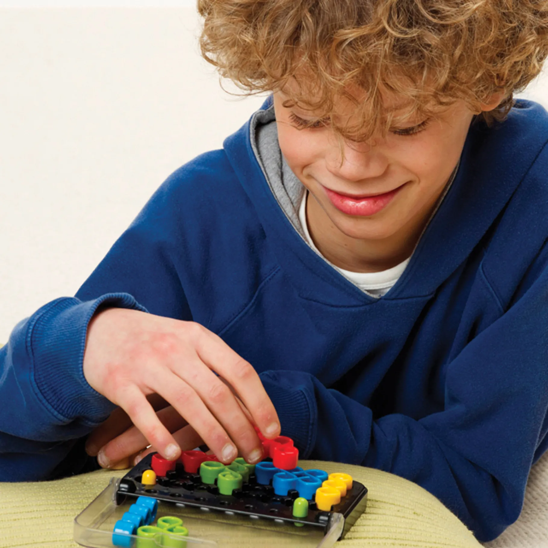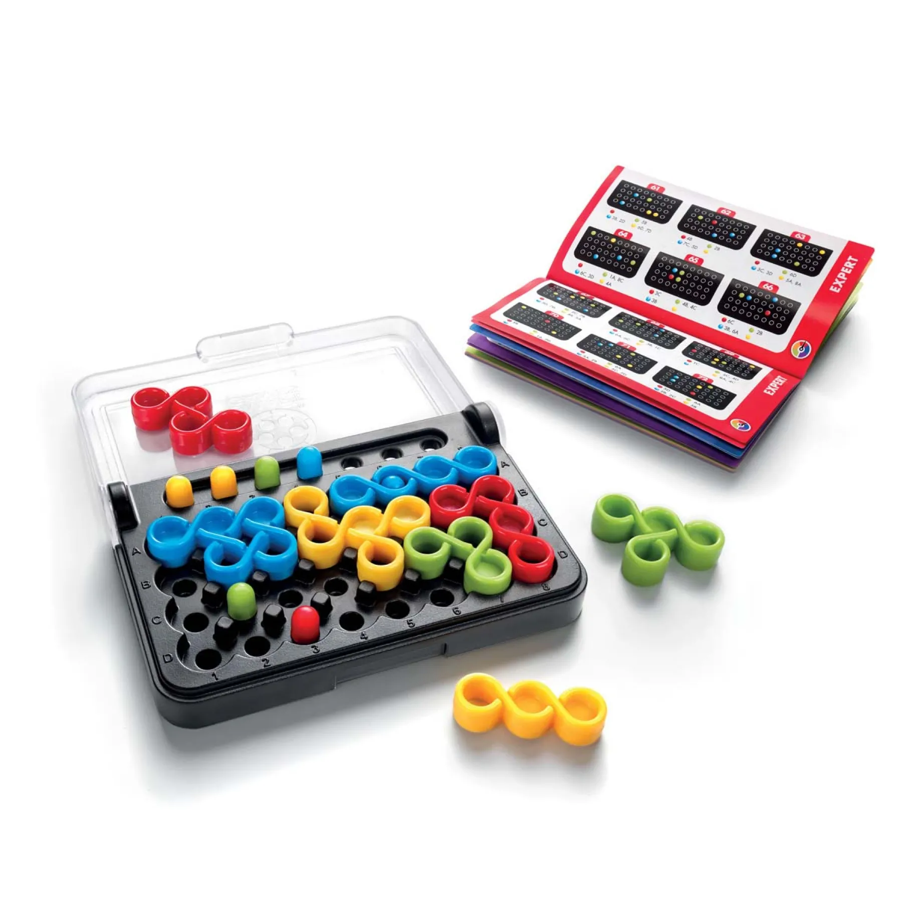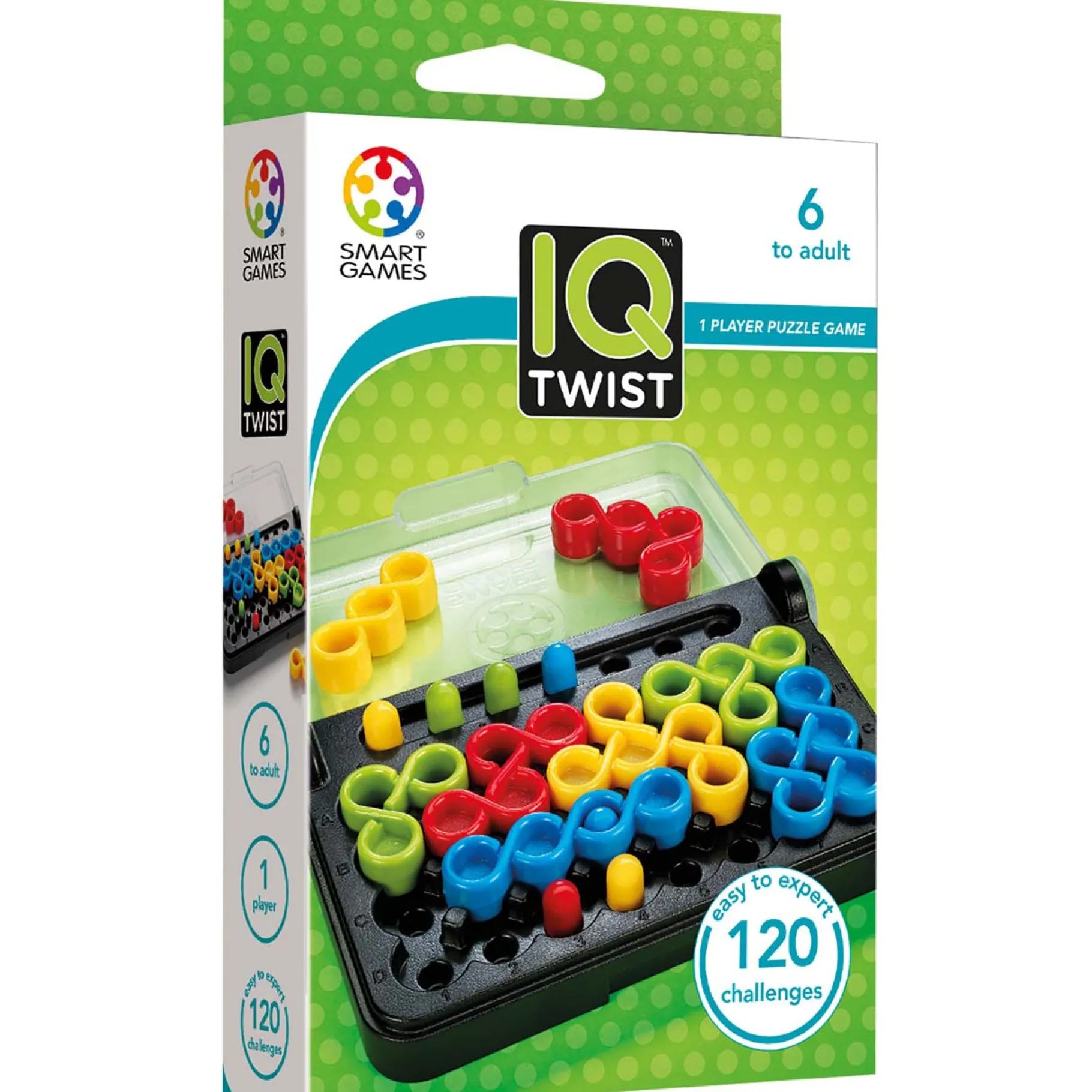 Het slimme ontwerp van het compacte spelbord maakt IQ Twist ideaal voor onderweg. Het is de perfecte manier om de hersenen te stimuleren en de logica en ruimtelijk inzicht van je kind spelenderwijs te ontwikkelen. Klaar voor de uitdaging? Pak het spelbord en laat het denkwerk beginnen! Geschikt voor kinderen vanaf 6 jaar.