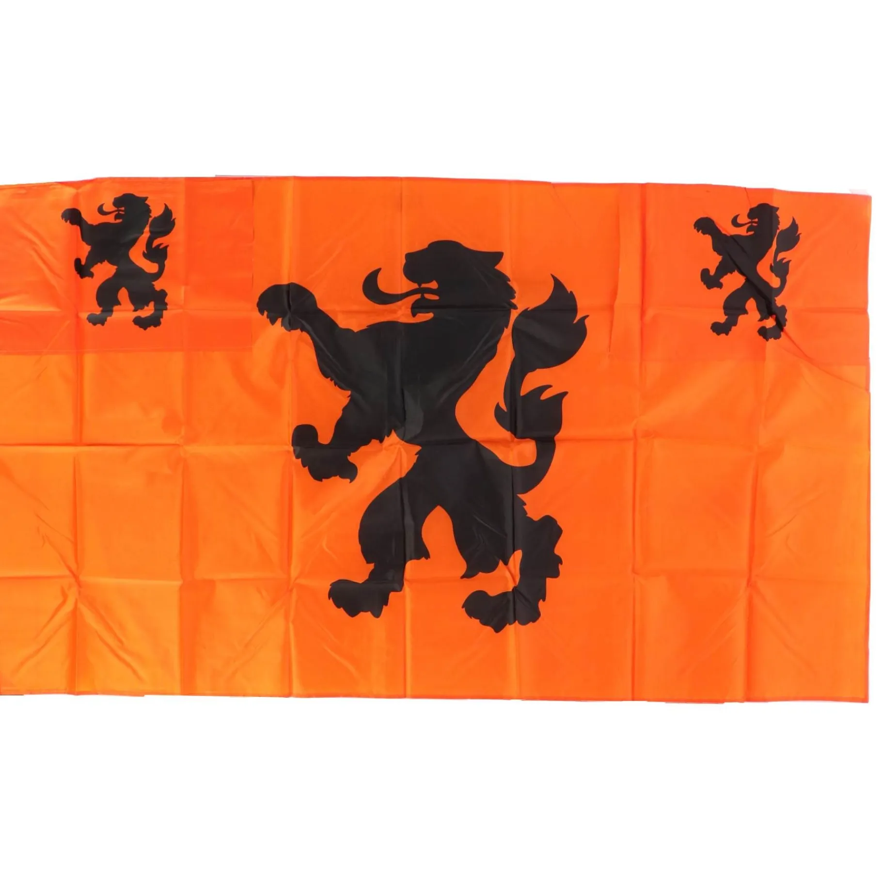Afmetingen: 90cm x 150cm. Materiaal: polyester. Kleur: oranje, zwart.