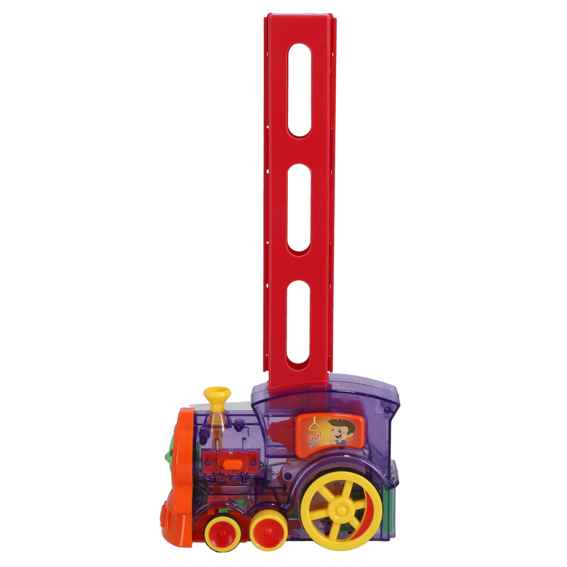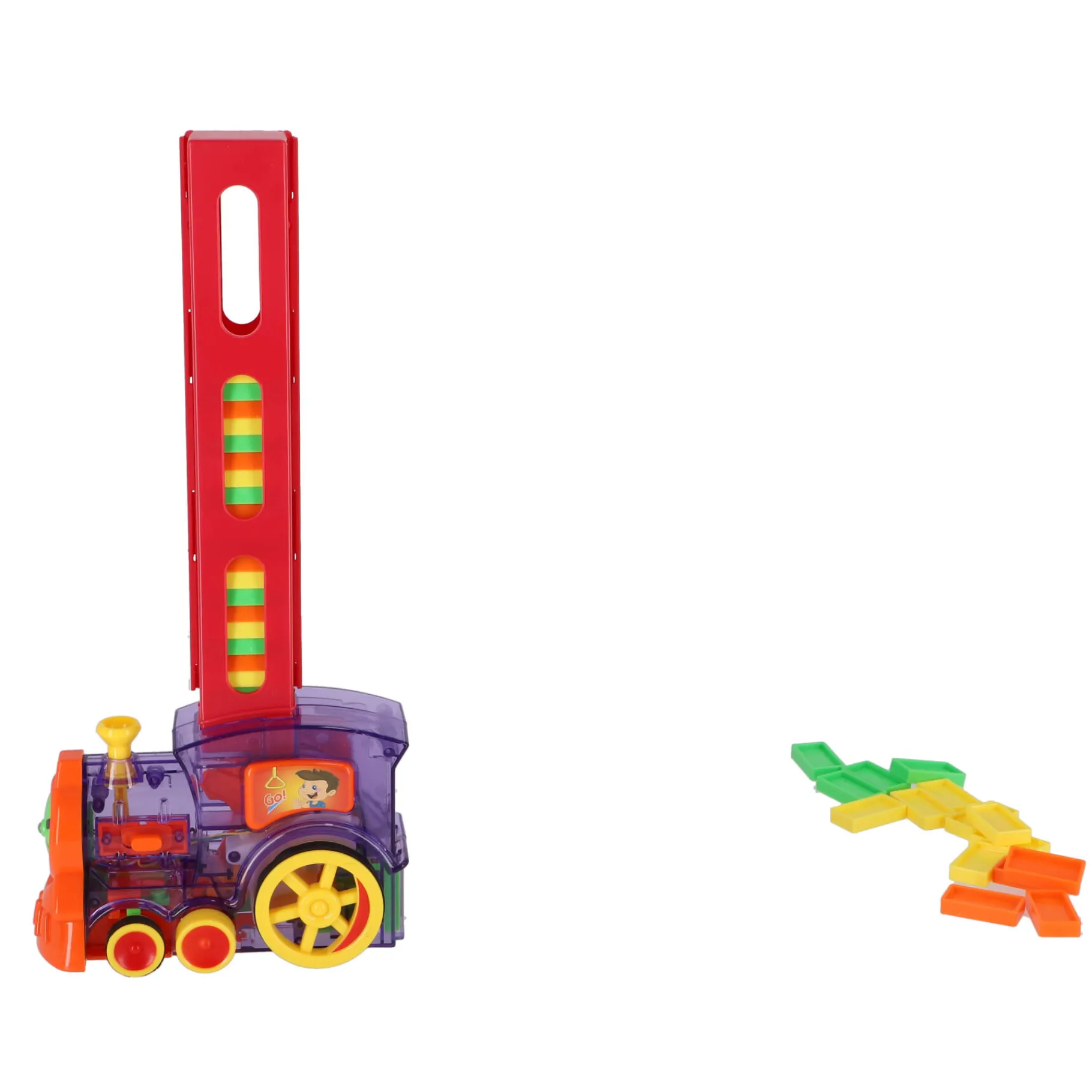 De Domino Trein maakt het leggen van dominostenen moeiteloos. Plaats hem aan het begin van je ontwerp, zet hem aan, en zie hoe de stenen zich in perfecte formatie uitrollen. Geen zorgen meer over wiebeltorens of onverwachte valpartijen – deze trein zorgt voor precisie en plezier!
