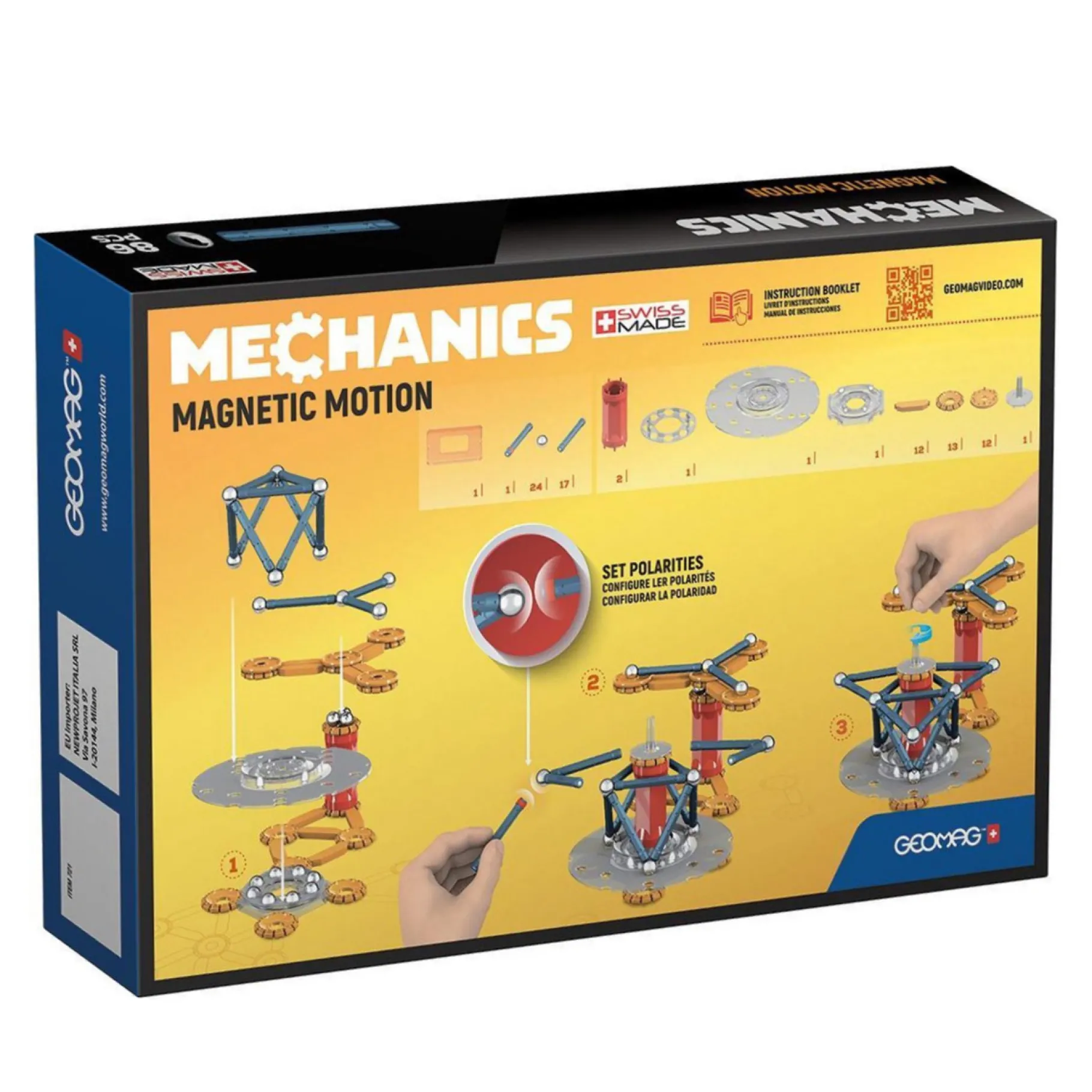 Inhoud: 17 Staven, 24 Bollen, 1 Vierkant paneel, 44 Mechanische Geomag onderdelen.