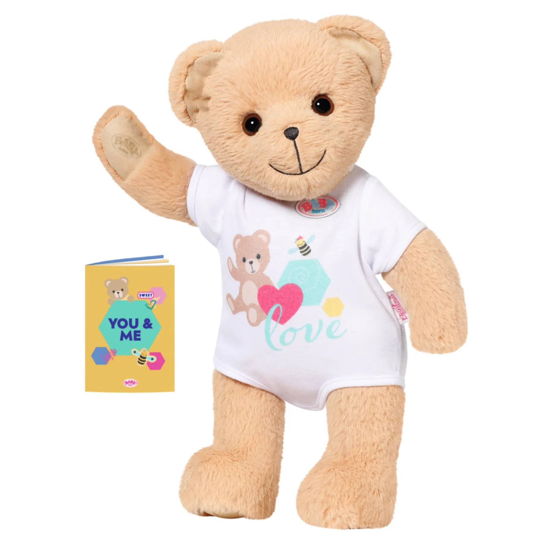 Inhoud: BABY born Beer (36 cm) met romper, vriendenalbum en stickervel.