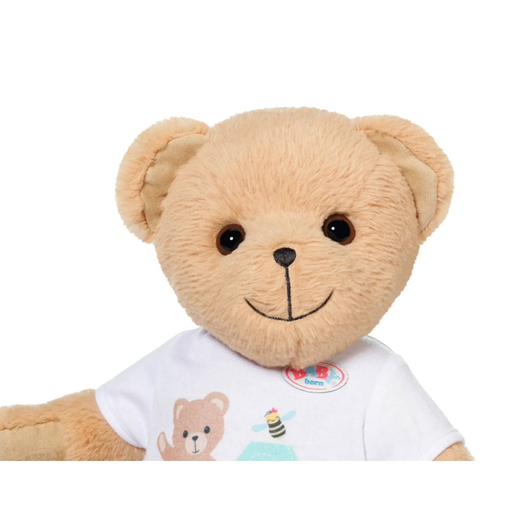 De kleine beer met de lieve glimlach heeft een zacht lichaam van pluche. Zijn eerste outfit is een roze rompertje. De beer heeft zijn eigen outfits en accessoires, maar kan ook bijna alle kleding van de normale BABY born dragen en haar accessoires gebruiken. Het lichaam is zo ontworpen dat bijna alle kleding voor de BABY born-pop van 43 cm de beer past. Doordat de armen en benen flexibel zijn en het hoofd kan draaien, kun je de beer makkelijk aan- en uitkleden. De beweeglijkheid maakt de beer ook perfect voor allerlei spelletjes en rollenspellen. Wie mag er als eerste iets in zijn vriendenalbum schrijven?