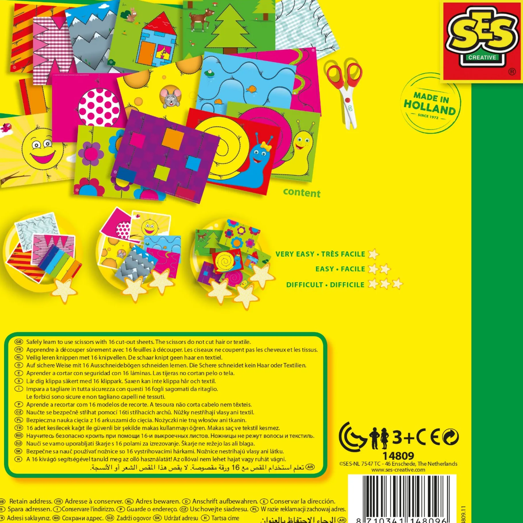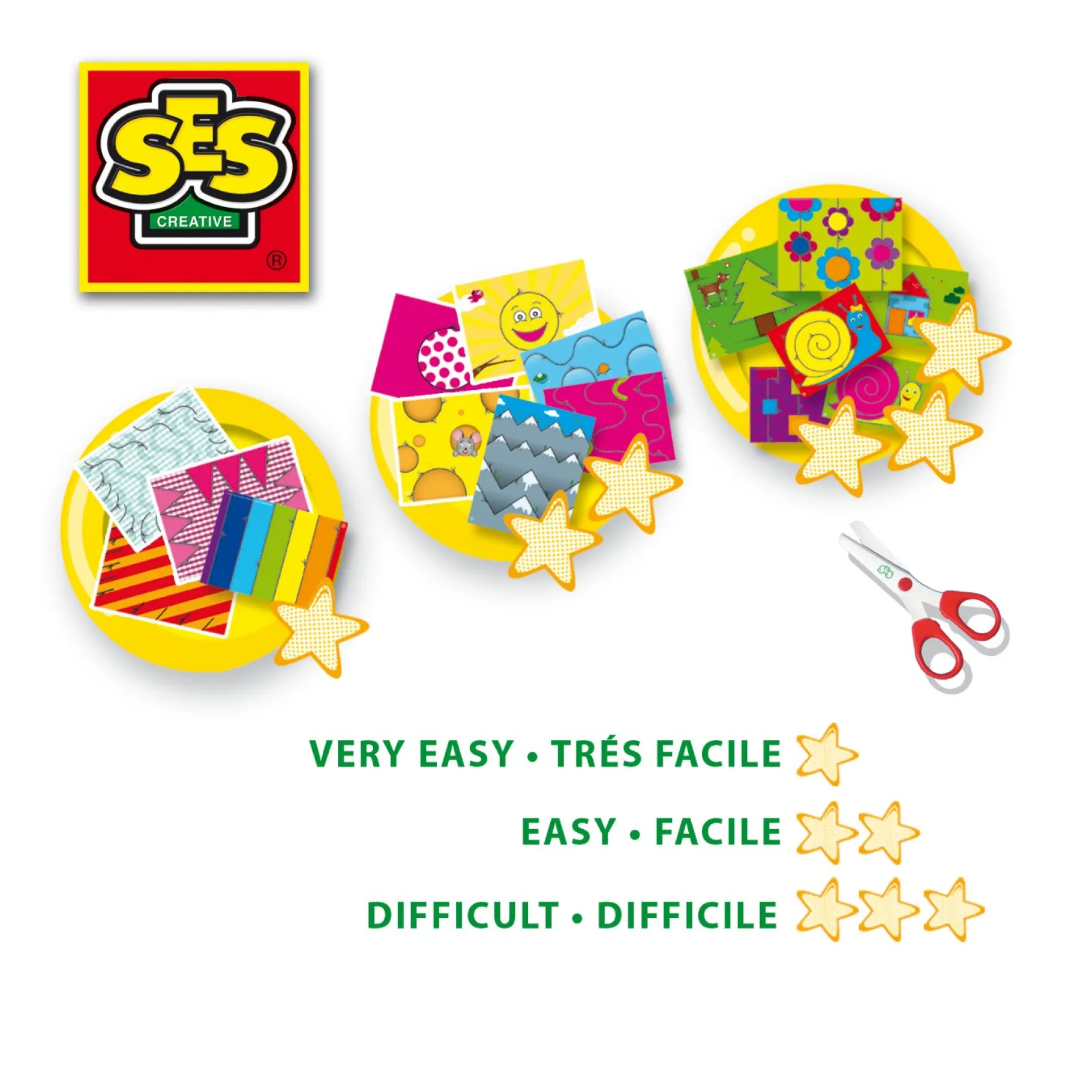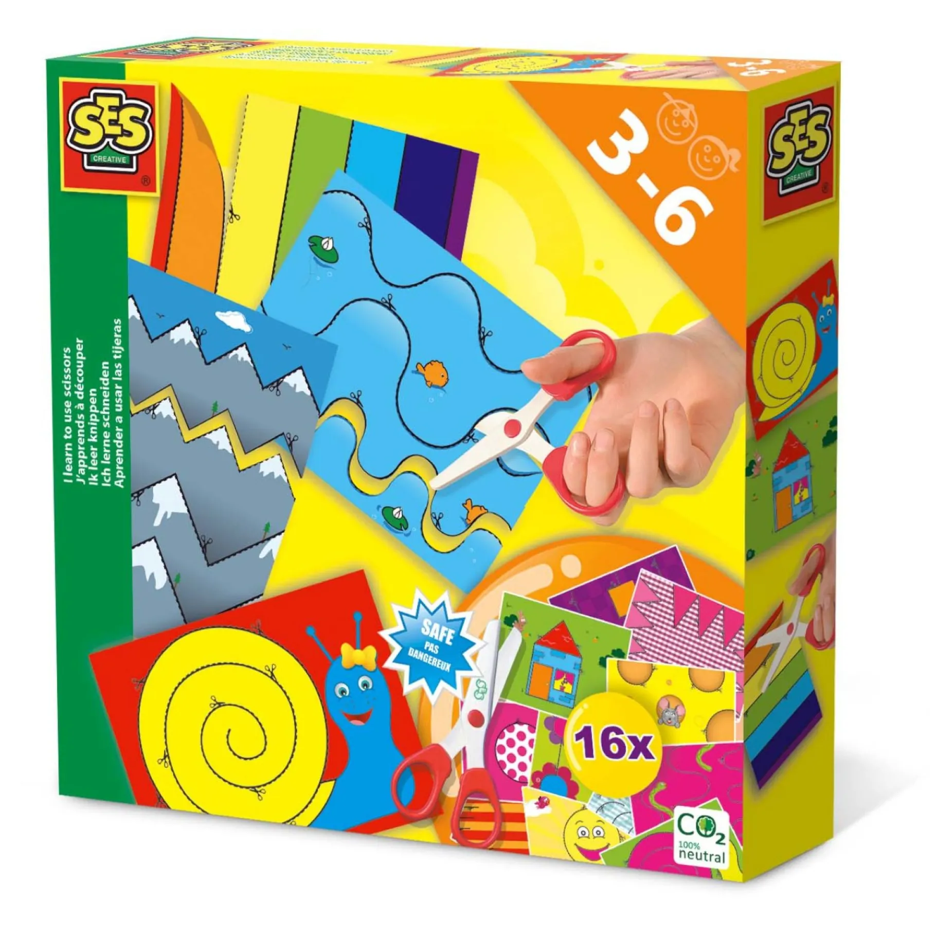 Iedereen moet ooit leren hoe je een schaar moet gebruiken en met deze set van SES leer je dat op een veilige manier. Het schaartje dat bij de set zit kan namelijk alleen papier knippen. Kleren, haren en huid lopen dus geen risico. In de set zitten voorbedrukte knipvellen waar knipopdrachtjes op staan die variëren in moeilijkheidsgraat. Begin met de makkelijke opdrachtjes en als je klaar bent met deze set, kun jij mooi knippen!