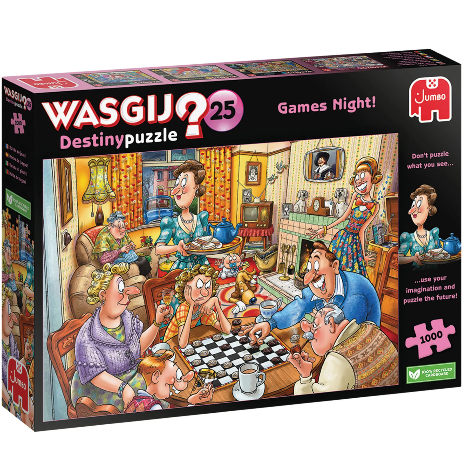 Het idee van Wasgij Destiny is ’tijdreizen’. Op de doos staat een foto van een drukke scène uit een bepaald tijdperk. Het is hierbij jouw taak om erachter te komen hoe de afgebeelde scène er in de toekomst uit zal zien!
