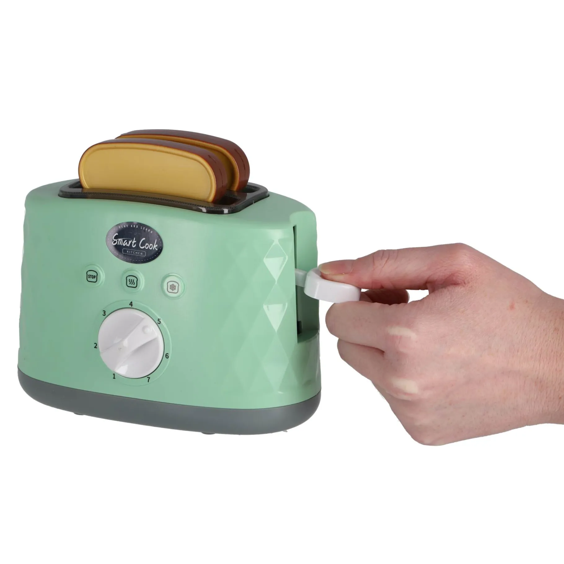 Plaats gewoon een stuk speelgoedbrood in de gleuf van de broodrooster en stel de timer in. Wacht dan vol spanning tot de timer afloopt en het ‘geroosterde’ brood eruit springt, net als in een echte broodrooster! Deze interactieve functie maakt het spelen realistisch en stimuleert de verbeelding van kinderen.