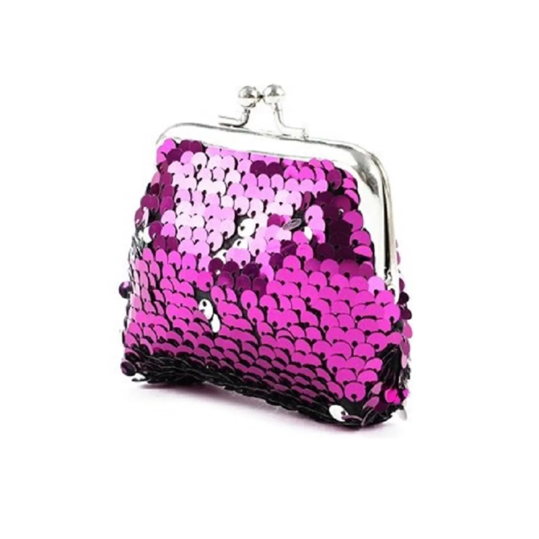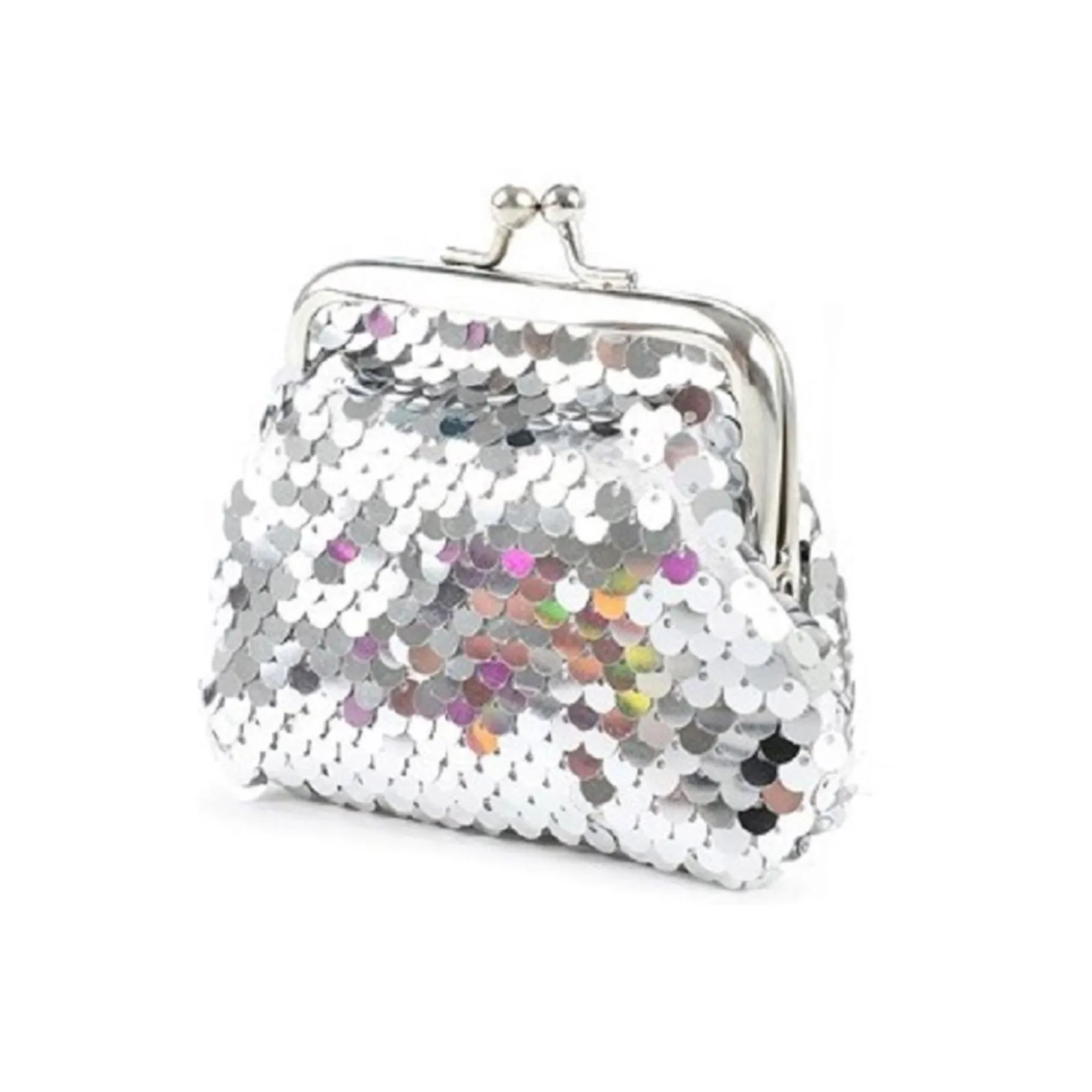Dit portemonneetje heeft een nostalgische uitstraling dankzij zijn retro ontwerp en is bedekt met pailletten die je look een beetje glamour geven. De pailletten kunnen van kleur veranderen wanneer je ze aanraakt, waardoor het portemonneetje niet alleen praktisch is, maar ook leuk en interactief.