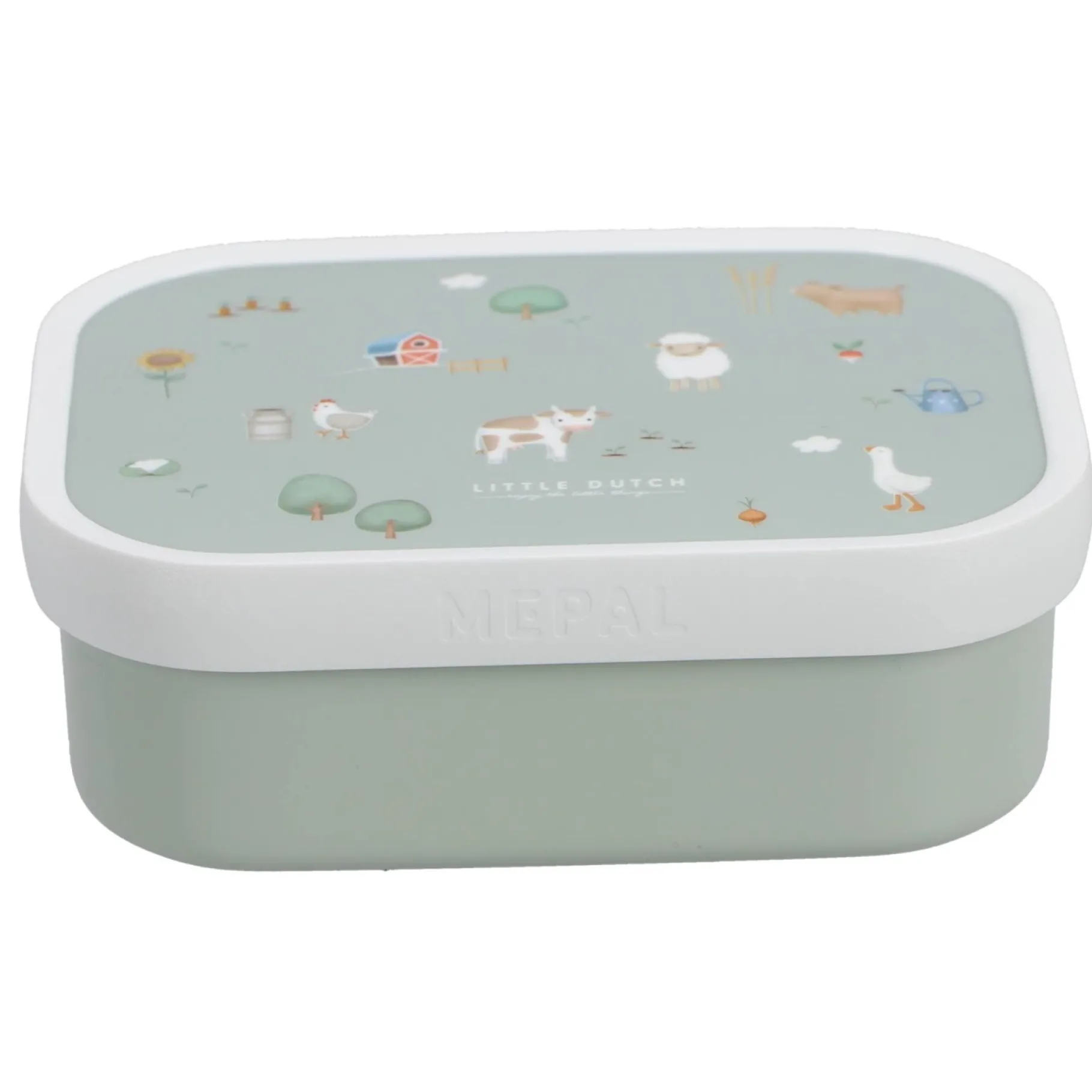 De Mepal lunchbox met het Little Farm ontwerp van Little Dutch voegt een vrolijk tintje toe aan je lunchtijd en past perfect bij andere Campus producten.