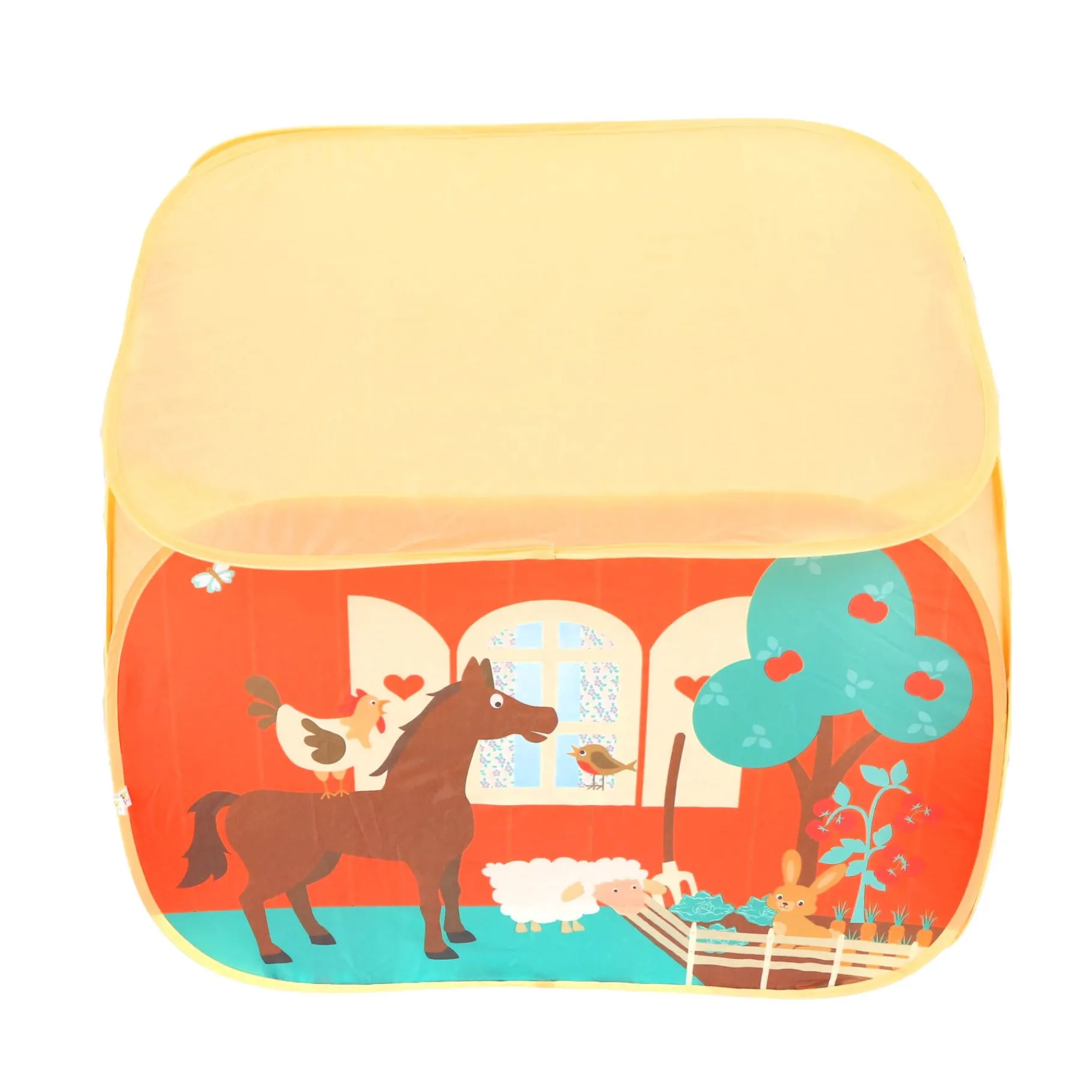 Stap binnen in een wereld vol avontuur en plezier, waar de levendige boerderijscène je uitnodigt om te spelen en te verkennen. De tent is gemaakt van 100% polyester en is super eenvoudig op te zetten. In een mum van tijd tover je een magische plek tevoorschijn waarin de verbeelding van je kind kan bloeien.