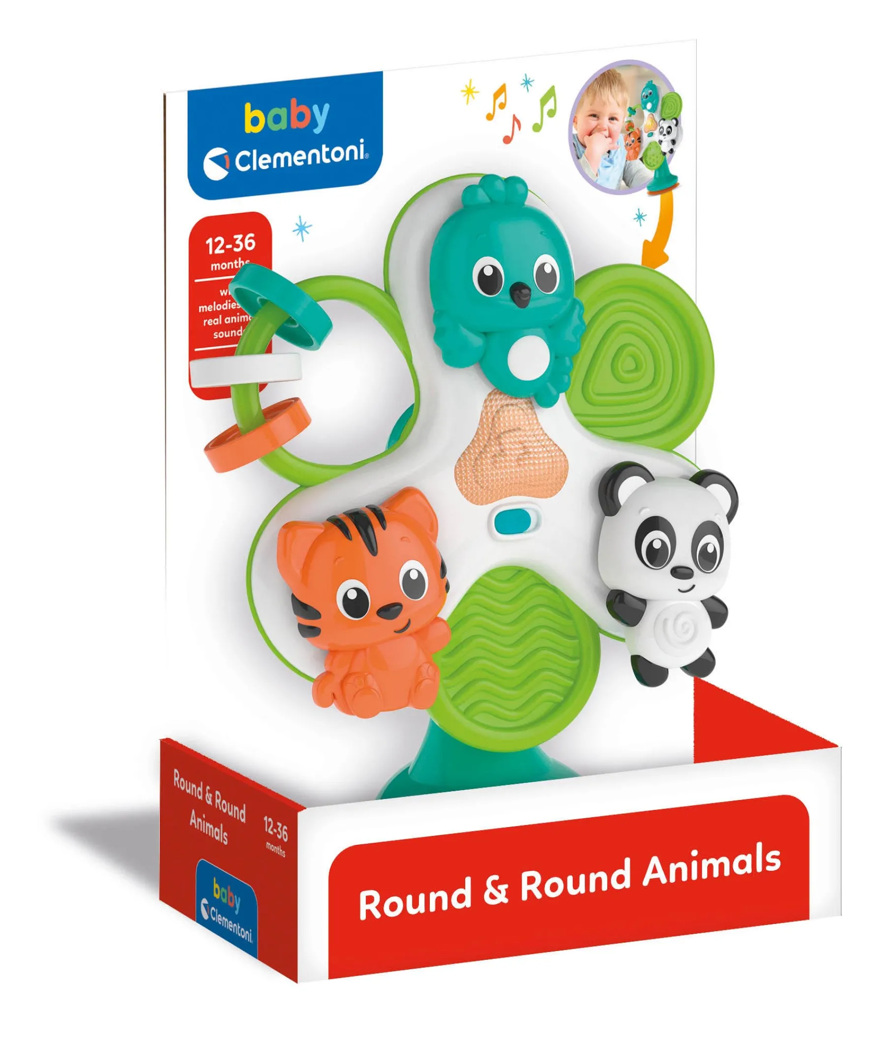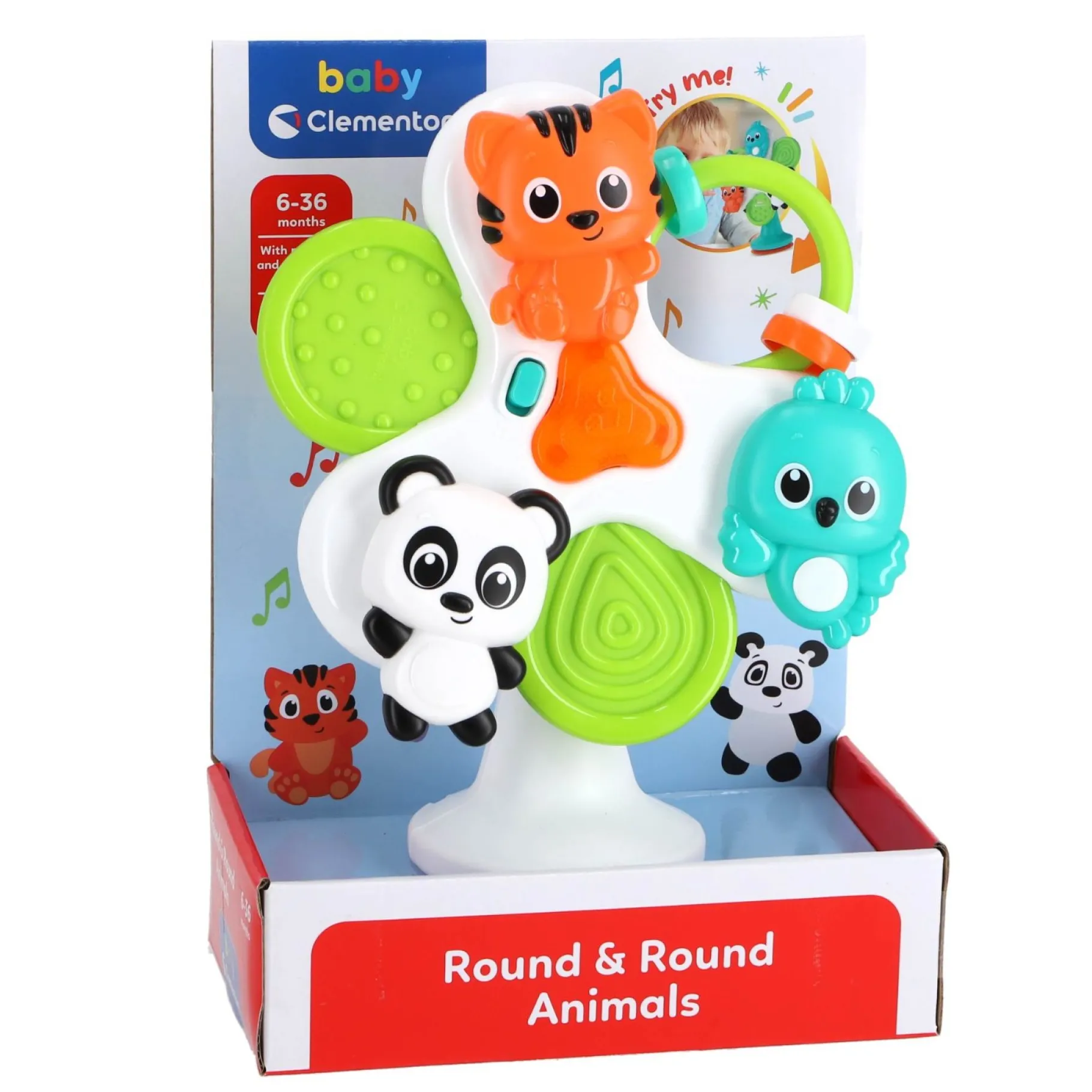 Draaiende Diertjes Met drie grappige diertjes die niet alleen in de rondte draaien, maar ook om zichzelf, is er altijd iets nieuws te ontdekken. Deze kleurrijke vriendjes houden de aandacht van uw kind vast en zorgen voor eindeloos speelplezier.