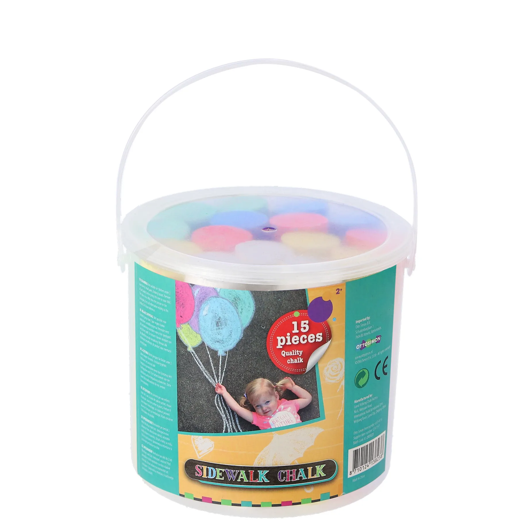 Maak mooie creaties met alle kleuren van de regenboog. Deze emmer stoepkrijt bevat 15 stuks en 6 kleuren waarmee je kunt tekenen wat je ook maar zou willen!