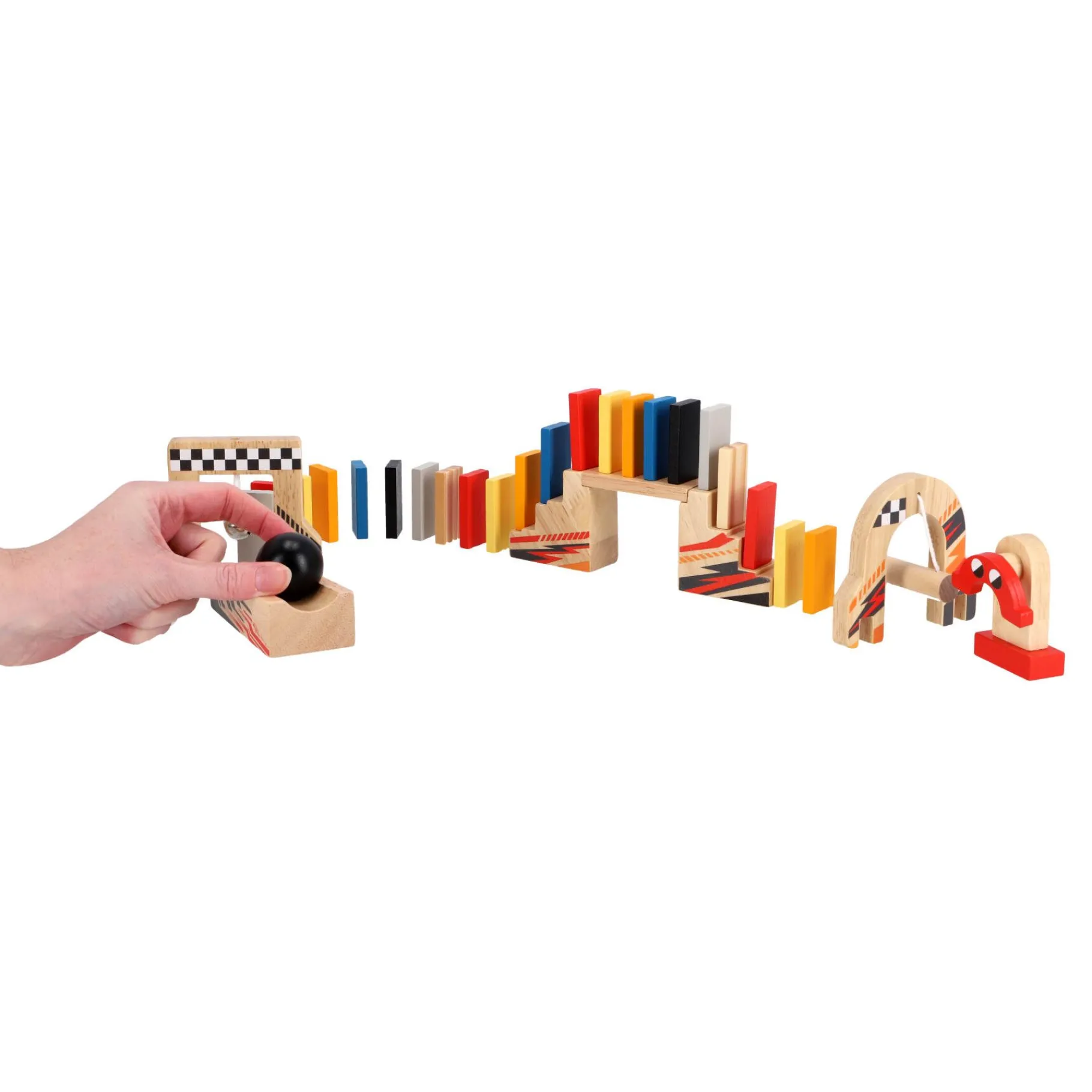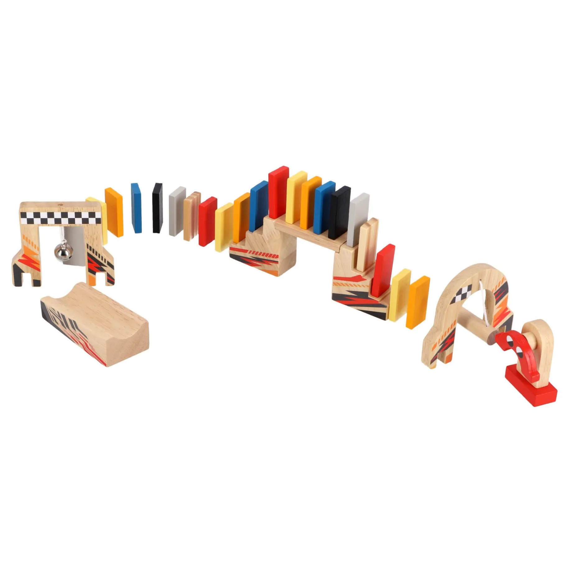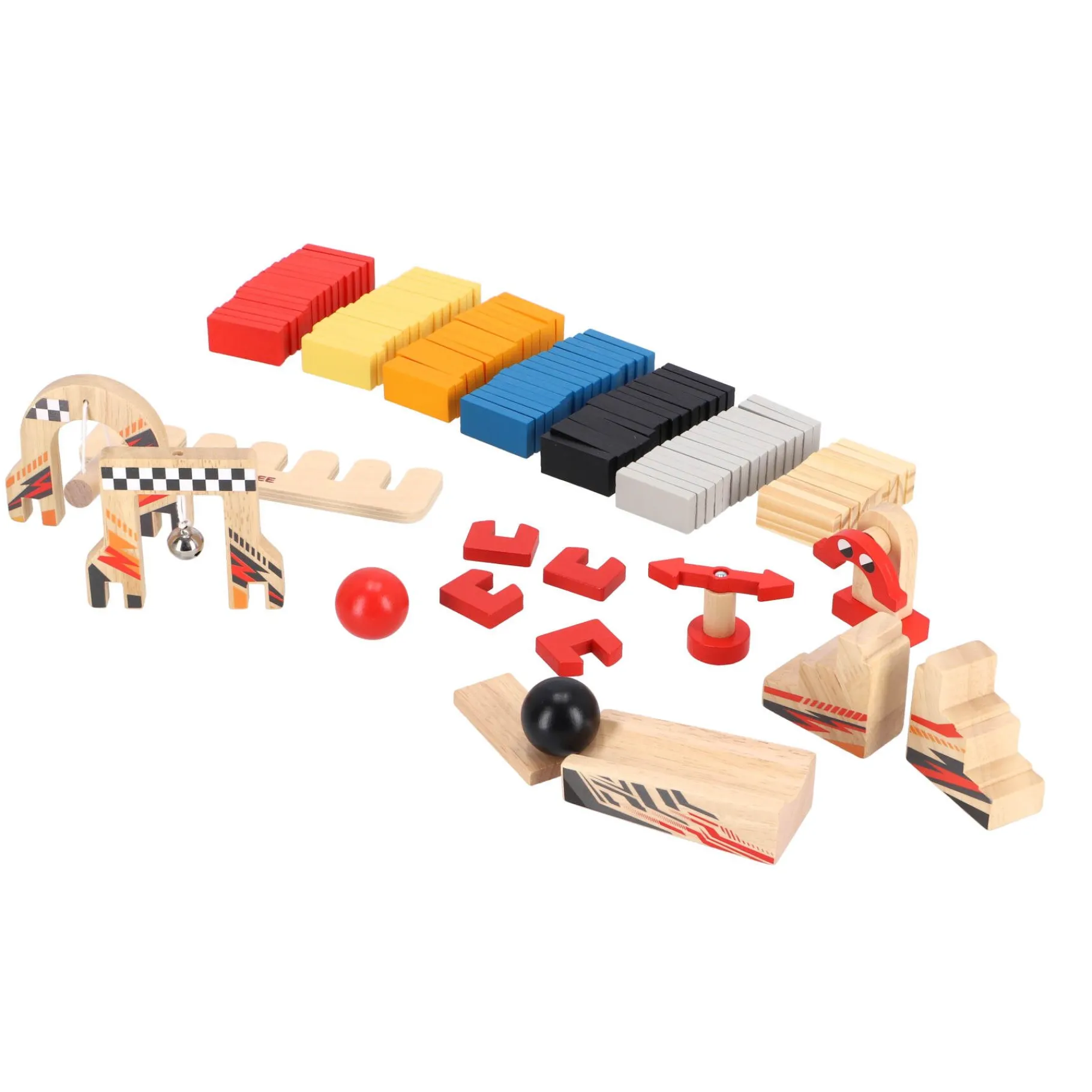 1. Complete Set: De set bevat maar liefst 100 kleurrijke dominostenen, 1 brug, 3 veldstarters, 1 sjabloon voor inspiratie, instructies om je op weg te helpen, en 2 ballen om de actie te starten. Alles wat je nodig hebt voor eindeloos bouwplezier!