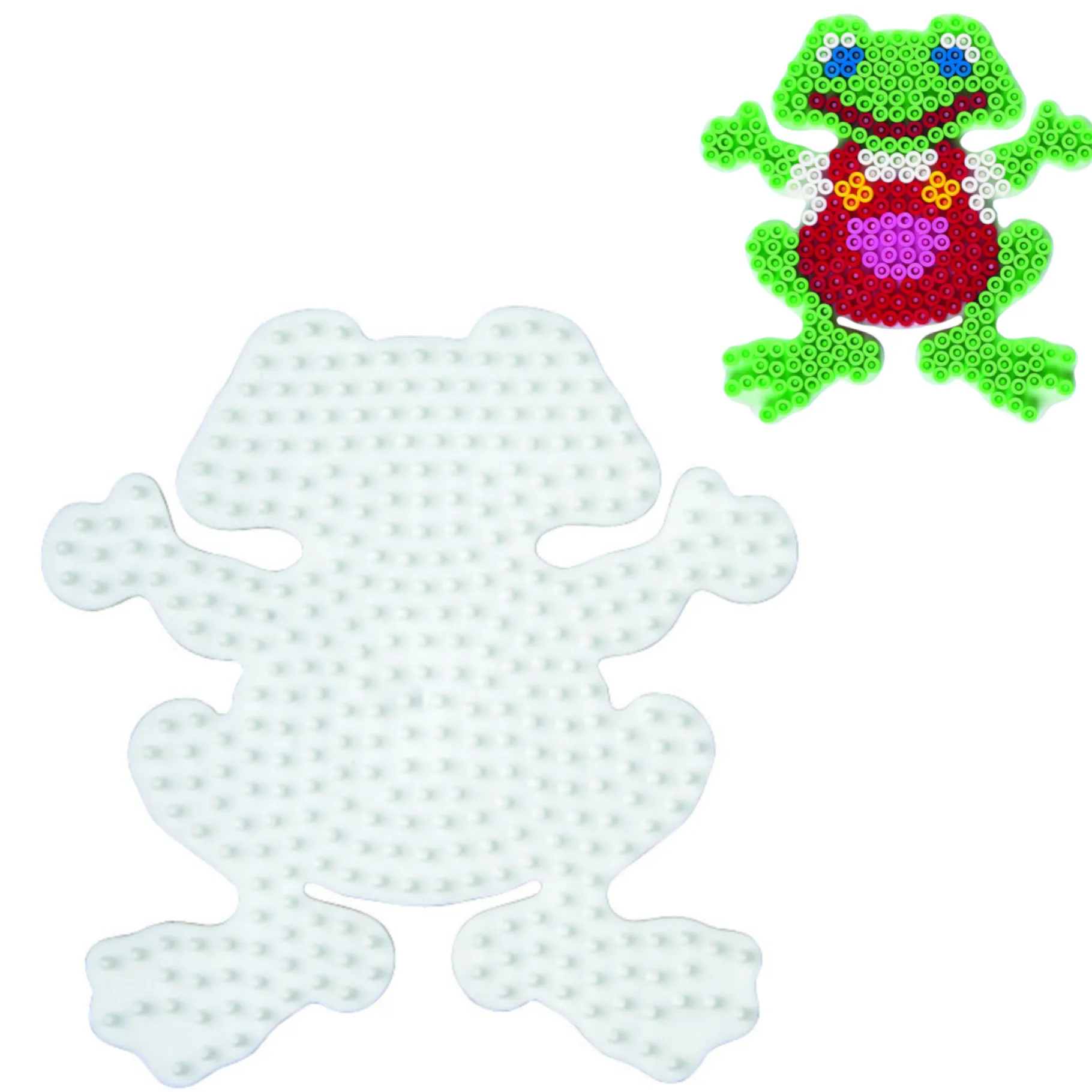 Het pegboard van Hama in de vorm van een kikker is geschikt voor kinderen vanaf vijf jaar.