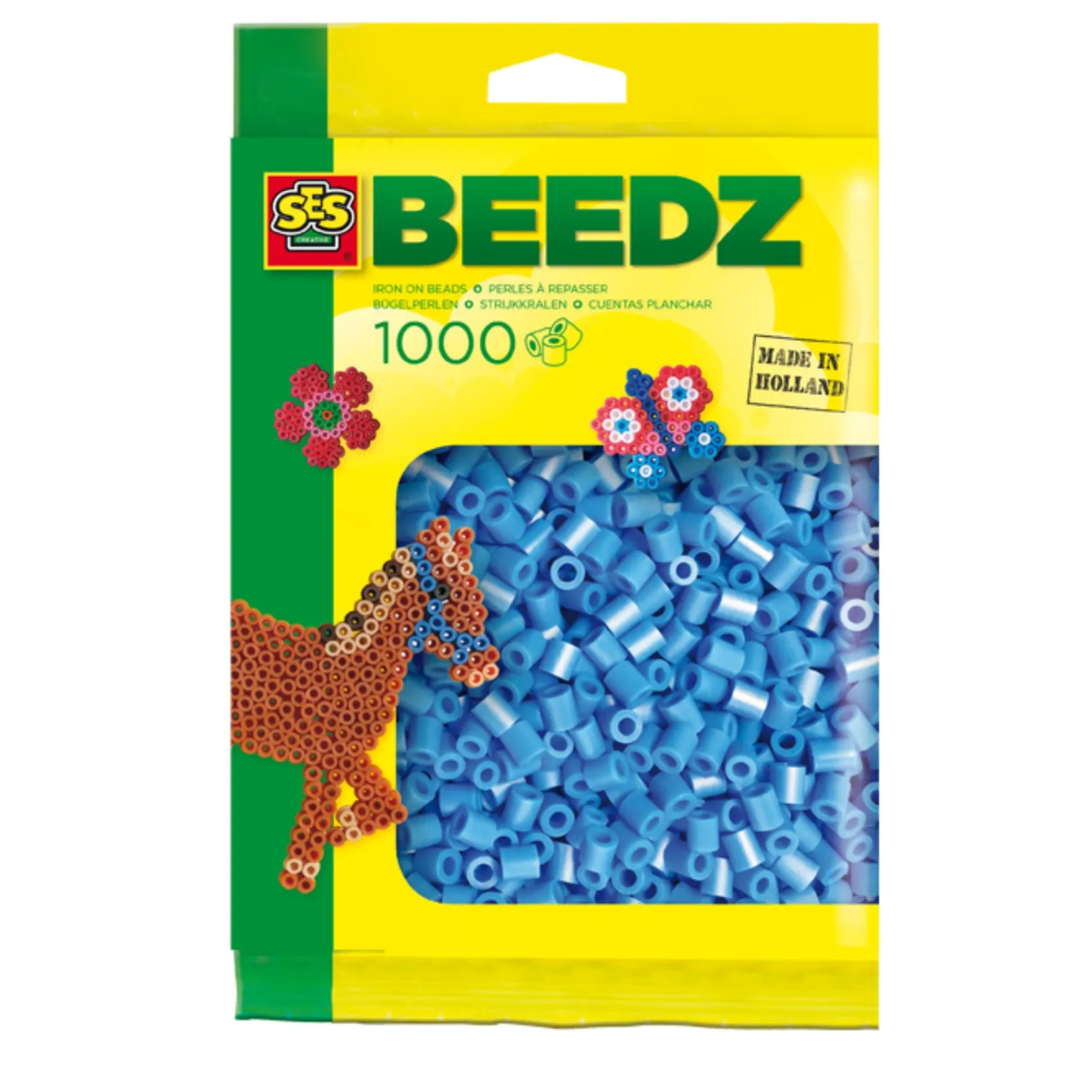 Maak de leukste kunstwerkjes met de blauwe strijkkralen van SES! Gebruik ze als lucht, water, of kleur voor een bloem. Jouw fantasie bepaalt!