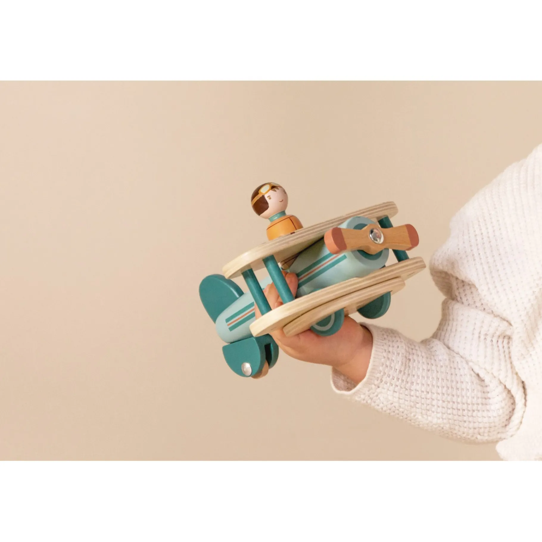 Gemaakt van stevig, duurzaam hout en afgewerkt met kindvriendelijke verf, is het vliegtuigje perfect voor kleine handjes en urenlang speelplezier. Het stimuleert de motorische vaardigheden, verbeeldingskracht en creativiteit van je kind terwijl ze hun eigen avonturen bedenken.
