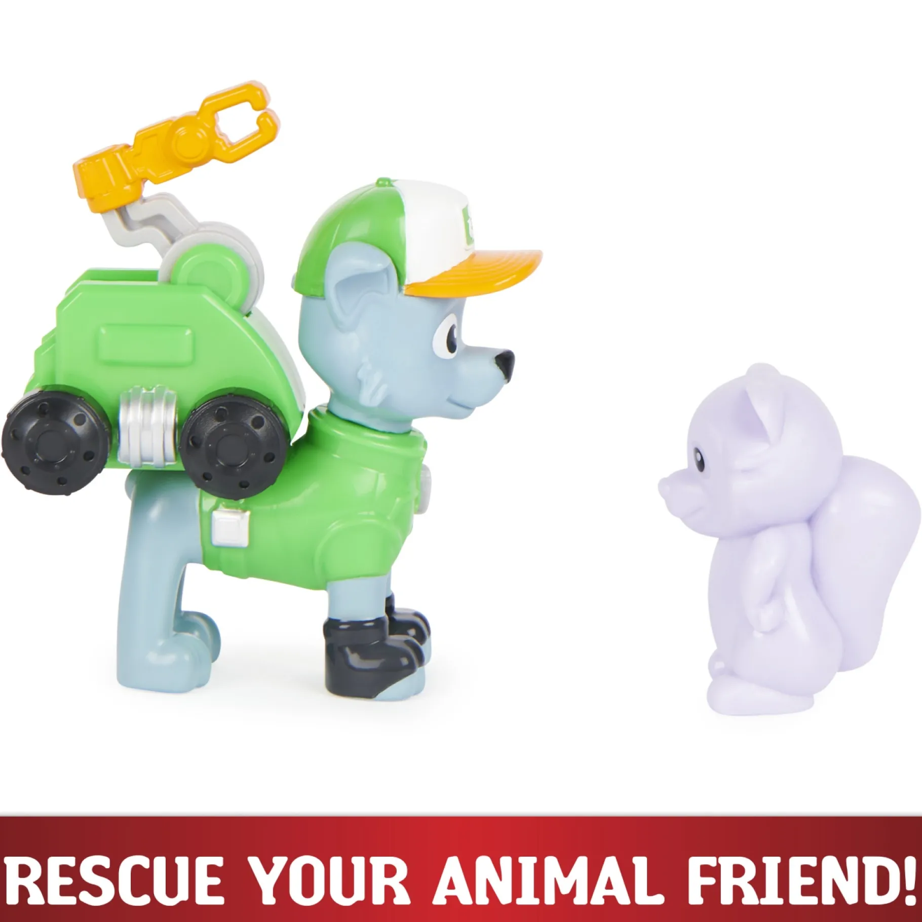 Inhoud: 1 Rocky-figuur, 1 drone met klikbevestiging, 1 dierenvriendje, 1 reddingsaccessoire, 1 commandoplatformverpakking