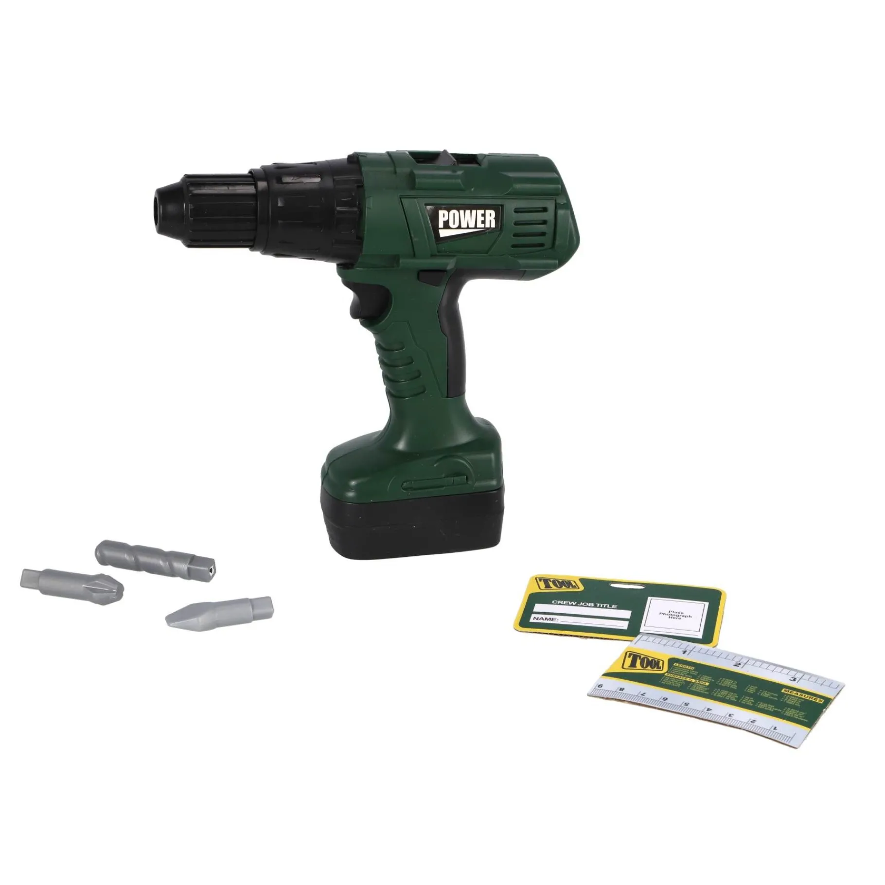 2. Boortjes: De set wordt geleverd met drie verschillende speelgoedboortjes, waardoor kinderen kunnen doen alsof ze verschillende materialen boren tijdens hun “klusjes”. Dit helpt bij het bevorderen van hun creativiteit en probleemoplossend vermogen.