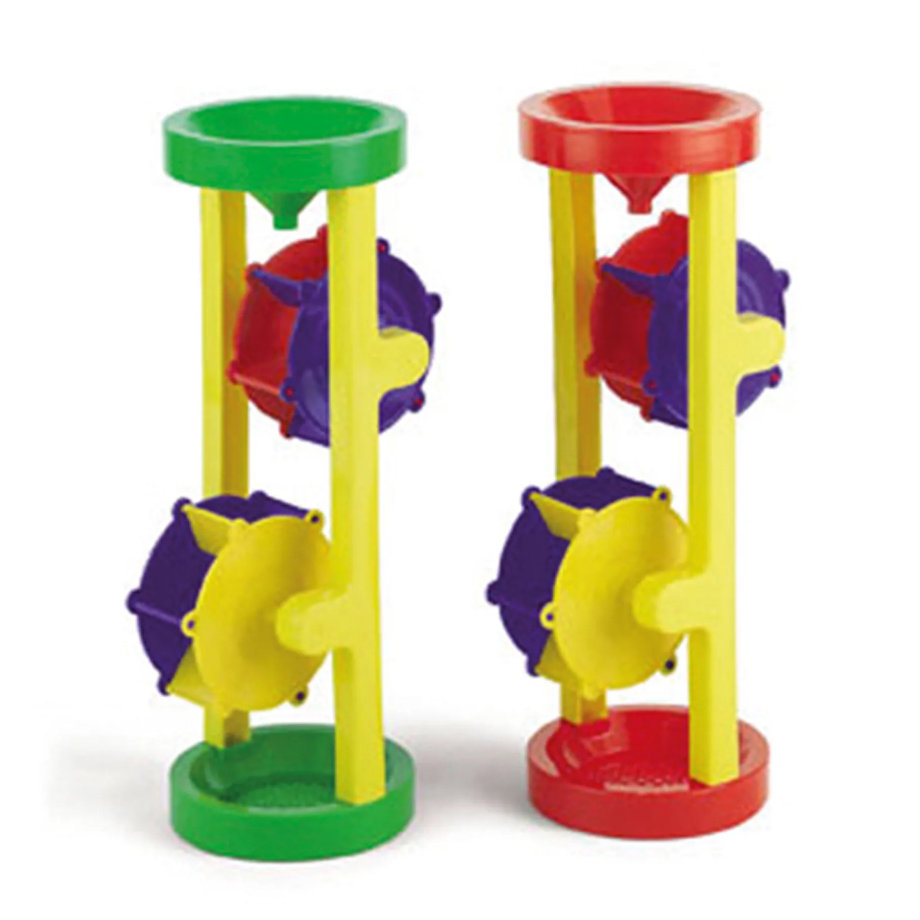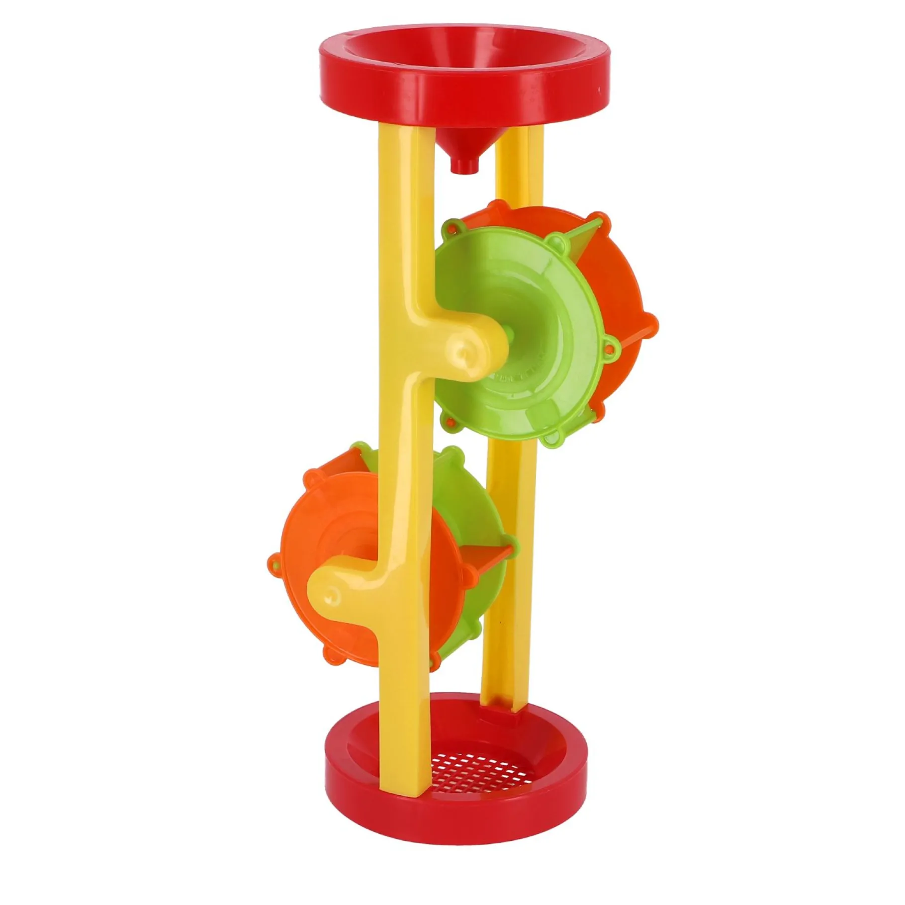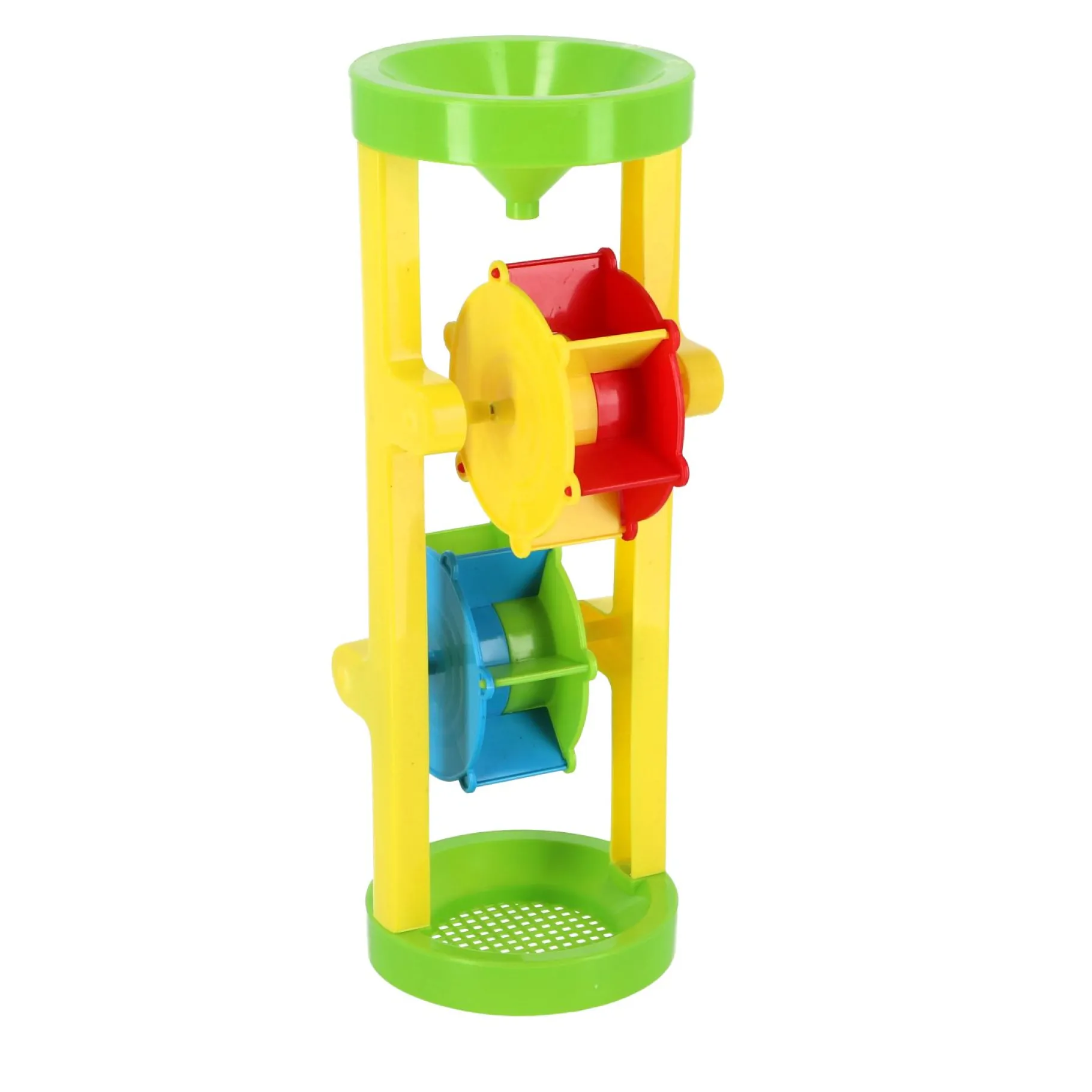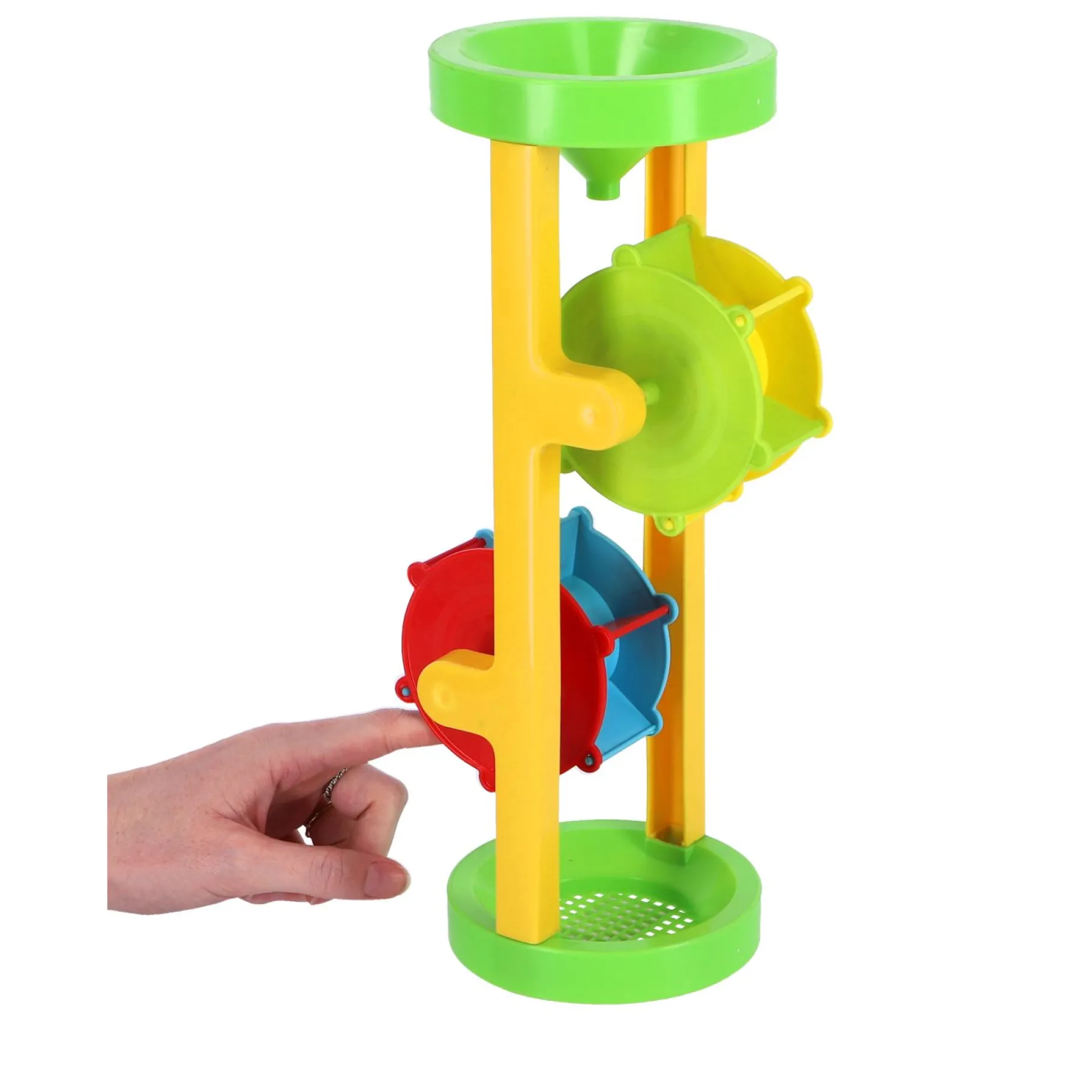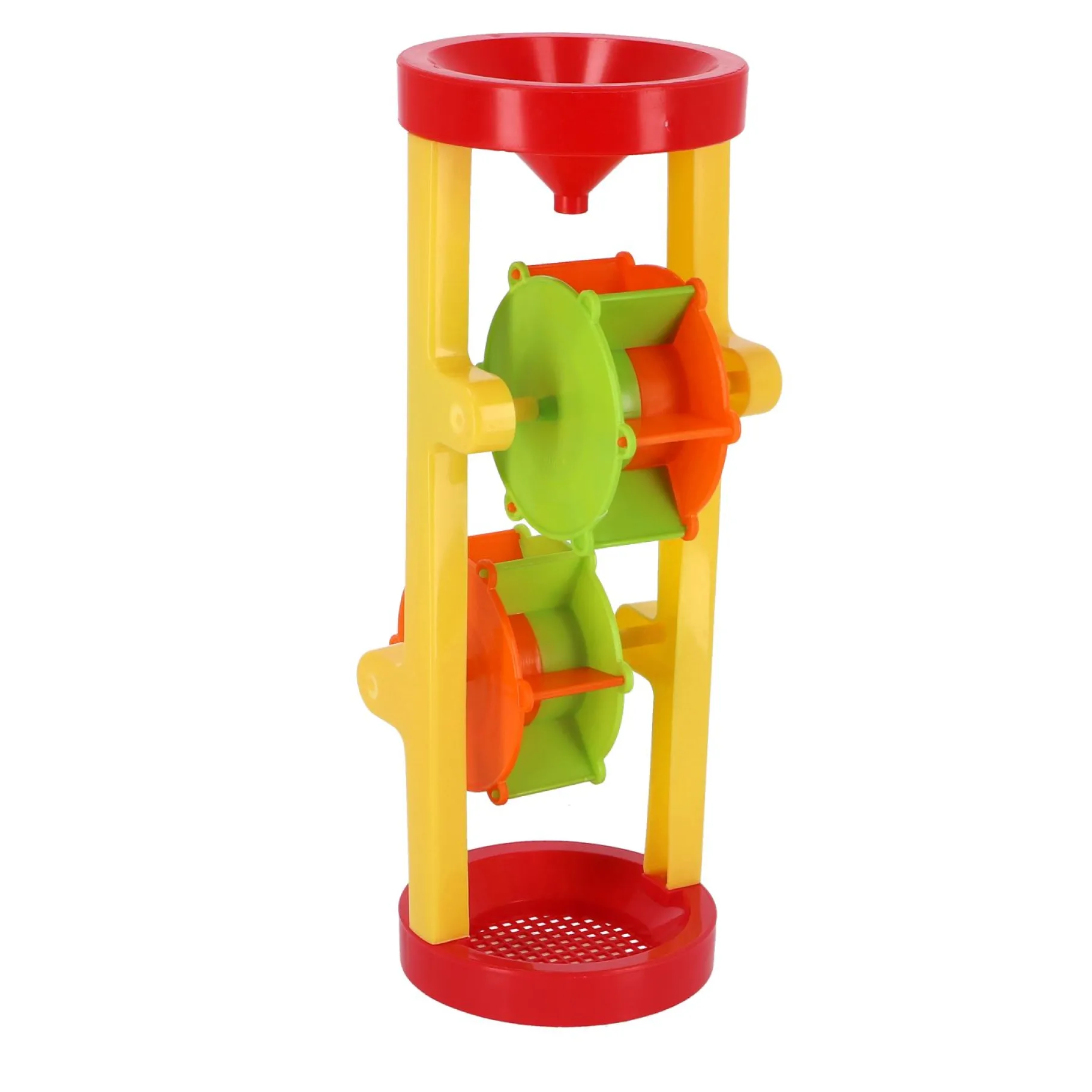 Neem deze molen mee in bad of in de zandbak. Gooi bovenin wat water of zand en de molen gaat draaien! Zet onderaan een bakje neer zodat die vol loopt met water of zand. Geschikt voor kinderen vanaf twee jaar.