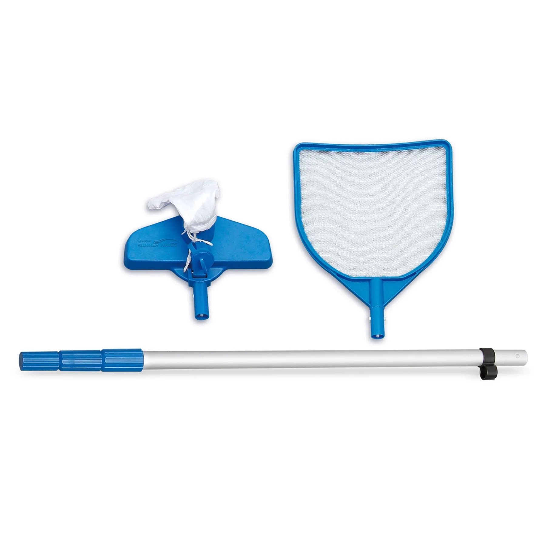 - Zwembad onderhoudsset; inclusief zuiger, schepnet en telescopische aluminium stang